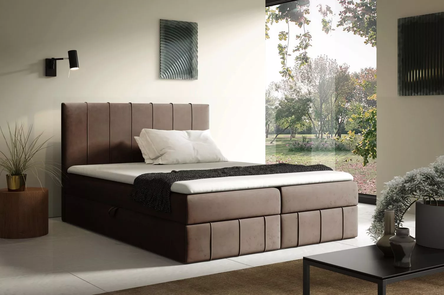 Kontinentální postel 160x200 KORINA - hnědá + topper ZDARMA
