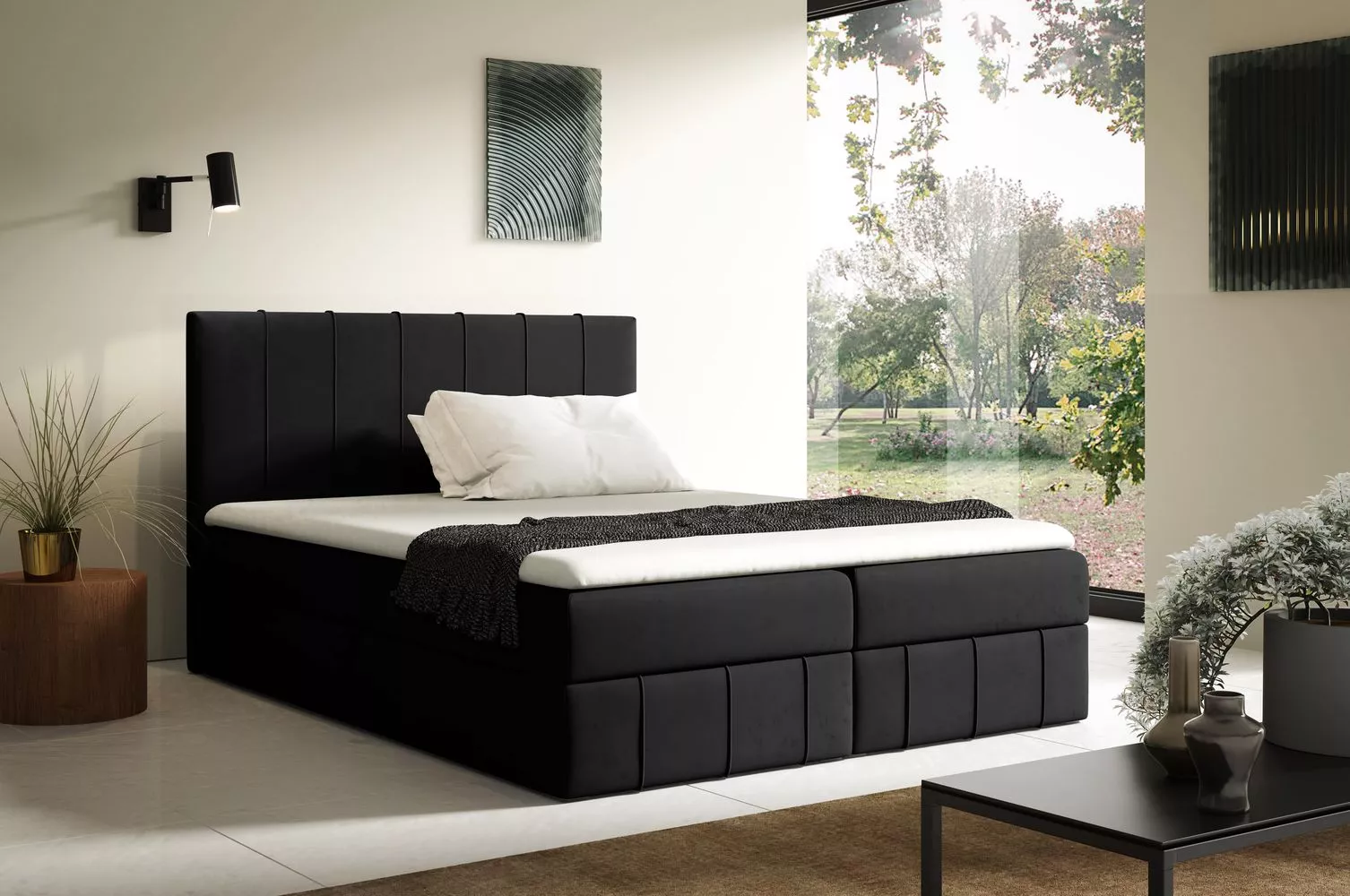 Kontinentální postel 160x200 KORINA - černá + topper ZDARMA