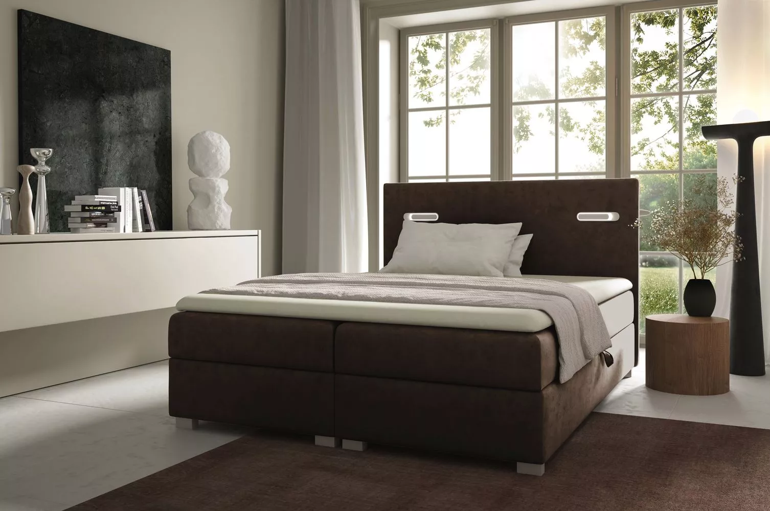 Čalouněná postel 140x200 MIRONA s LED osvětlením - hnědá + topper ZDARMA