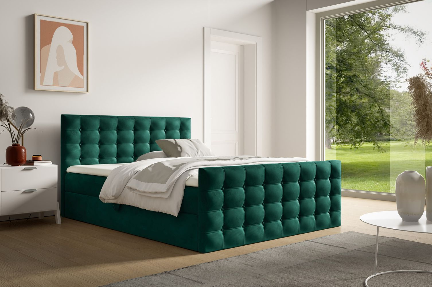 Čalouněná postel 160x200 MIRONA s LED osvětlením - láhvově zelená + topper ZDARMA
