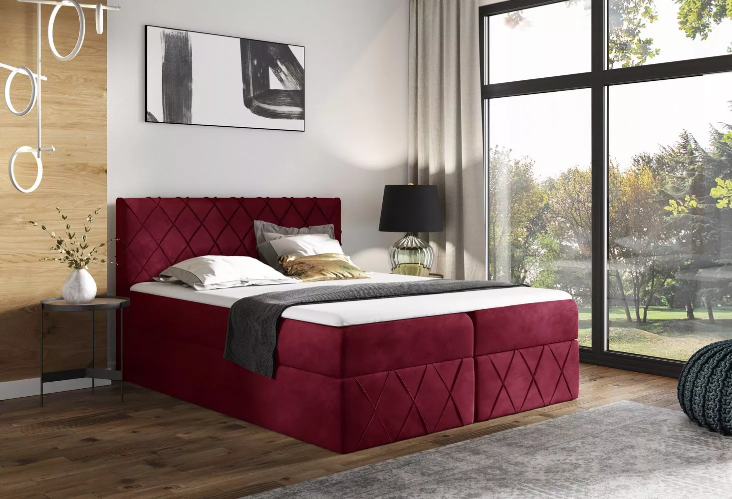 Manželská postel 180x200 PEREZ LUX - červená + topper ZDARMA