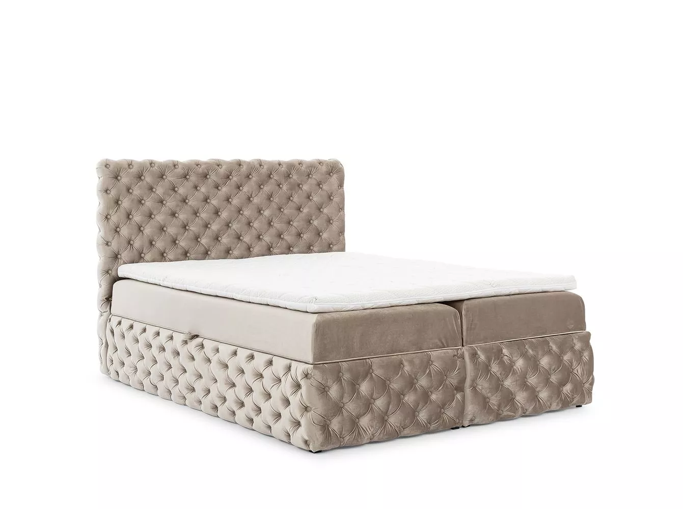 Součástí postele je rošt, matrace a topper.