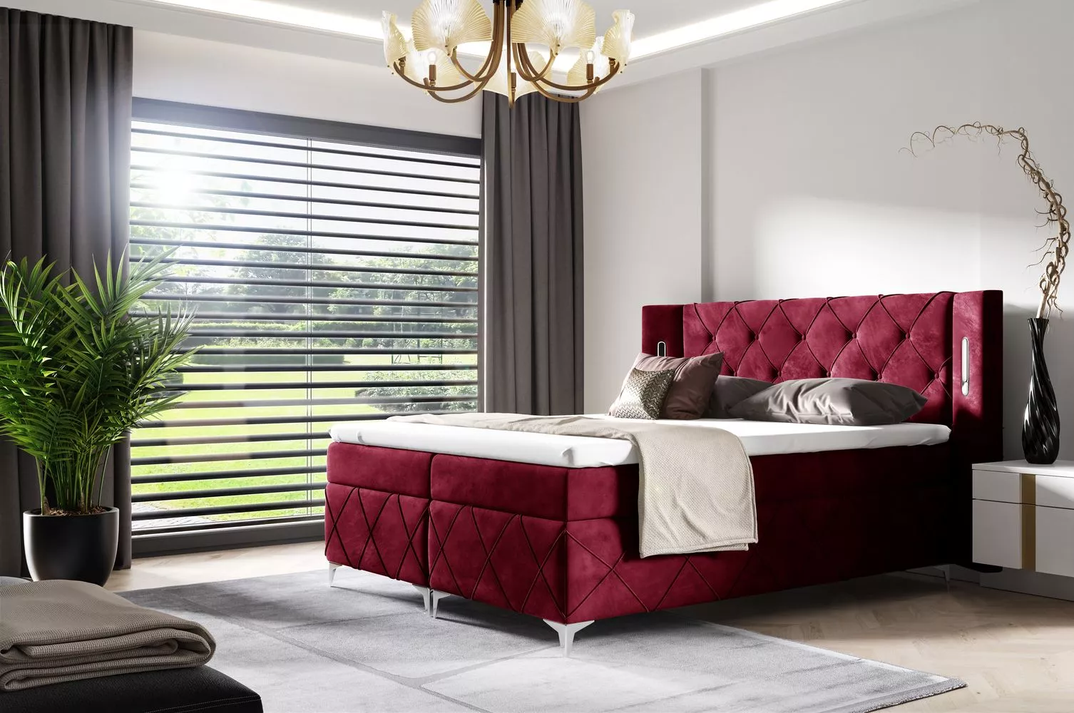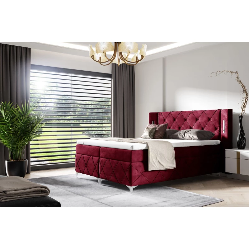 Čalouněná manželská postel 140x200 GELA - červená + topper ZDARMA