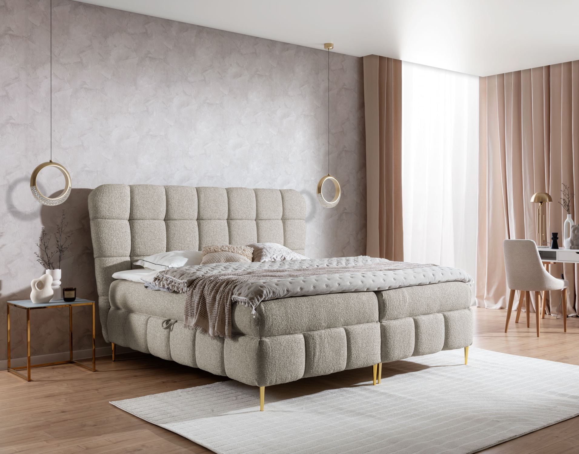 Čalouněná manželská postel 180x200 GELA - ecru + topper ZDARMA