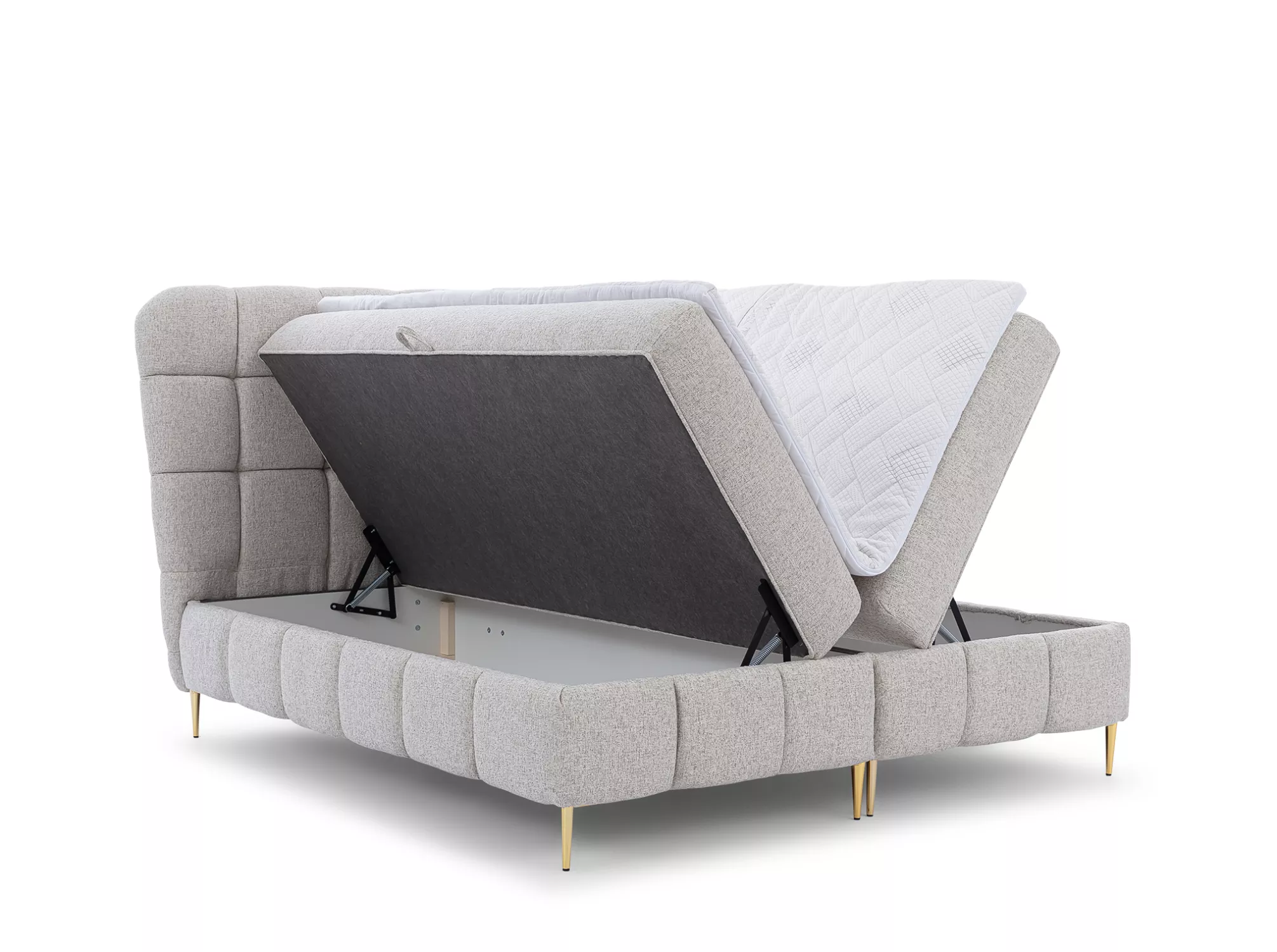 Manželská postel 140x200 MILETA s úložným prostorem vám zajistí pohodlný spánek a odpočinek. Čalouněné čelo zamezí poškrábání a zašpinění zdi.