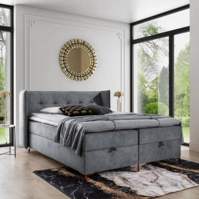Čalouněná manželská postel 180x200 RUMJA - tmavě šedá + topper ZDARMA