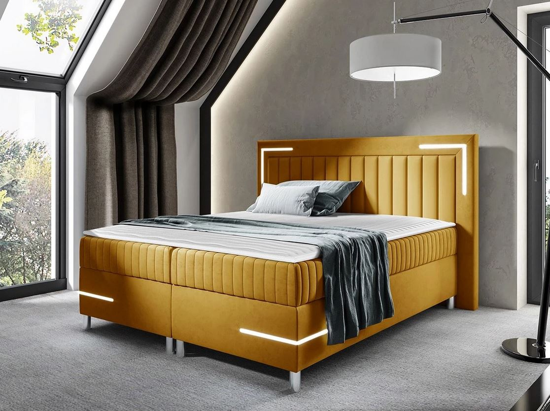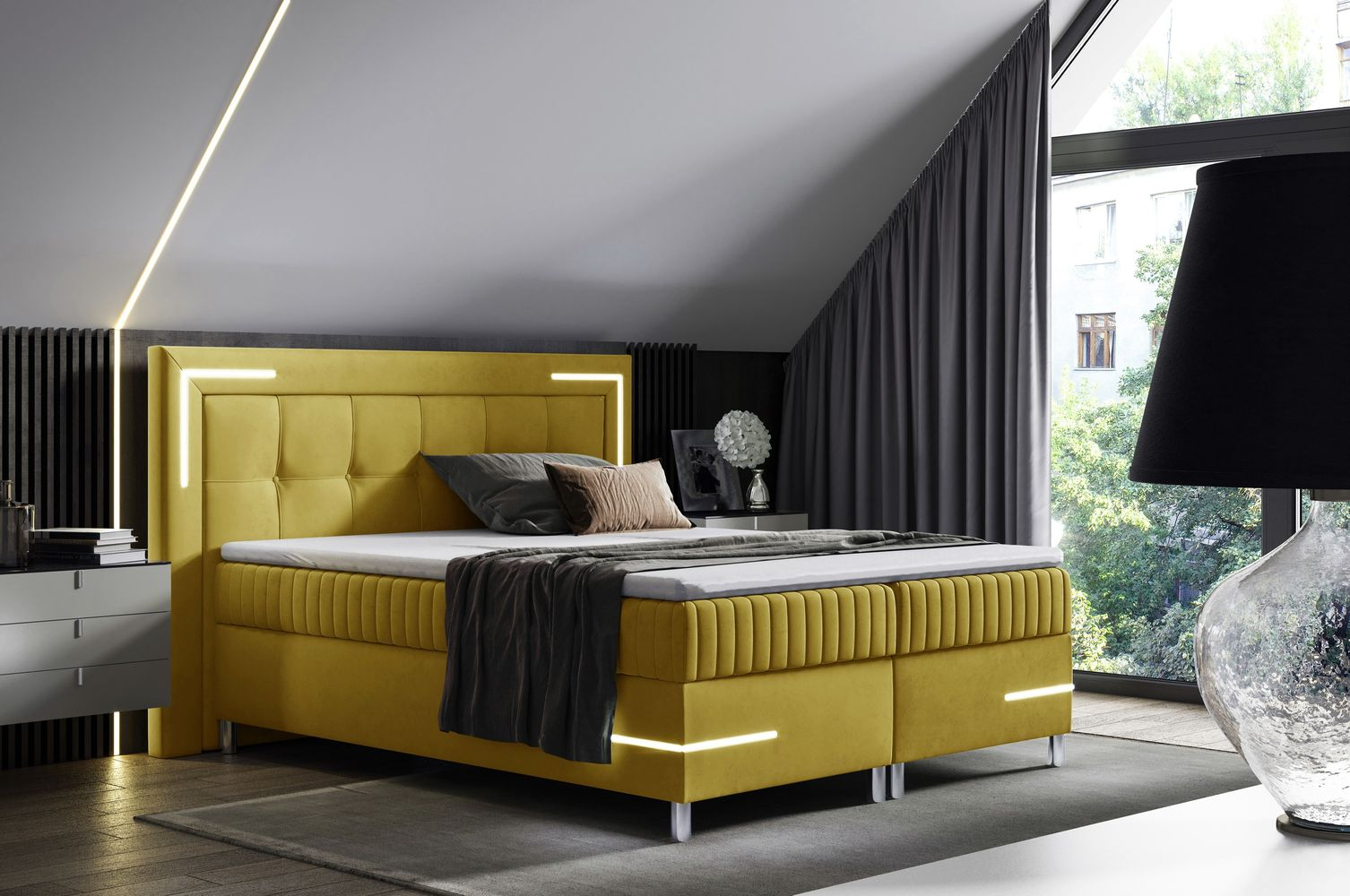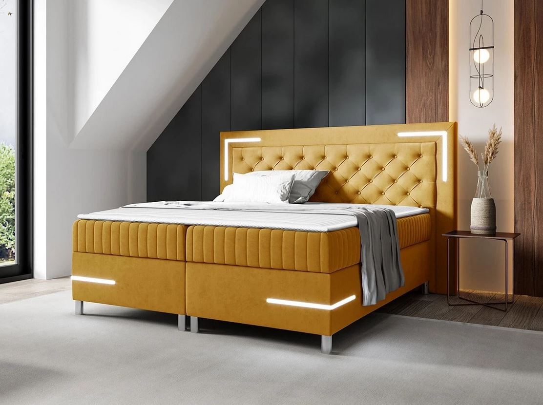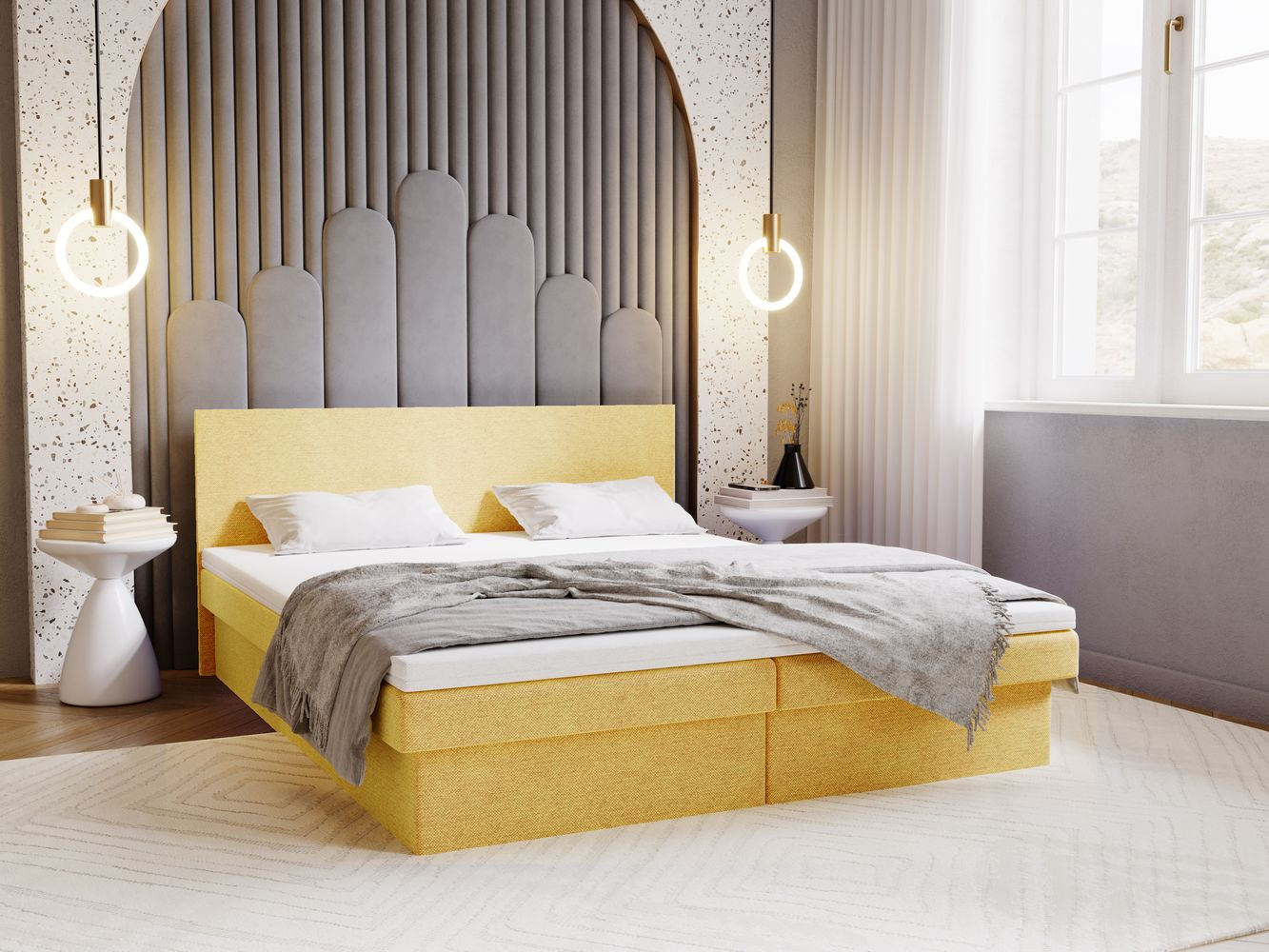 Čalouněná manželská postel 180x200 RUMJA - žlutá + topper ZDARMA
