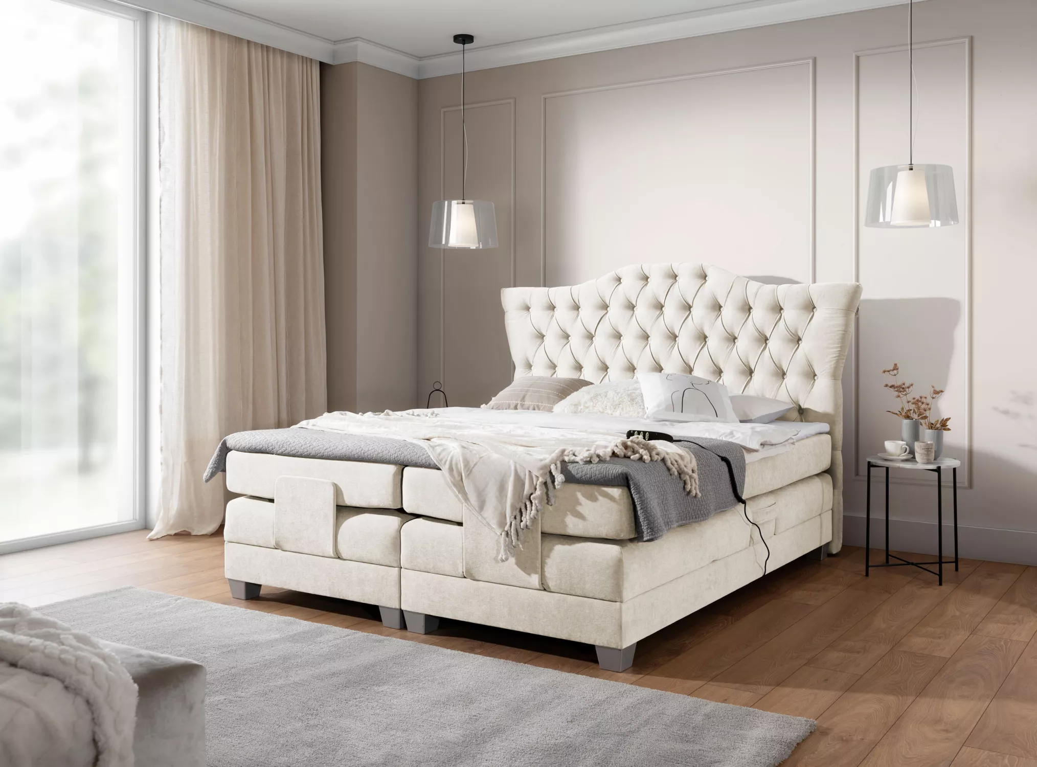 Elektrická polohovací postel 200x200 RODIKA - krémová + topper ZDARMA