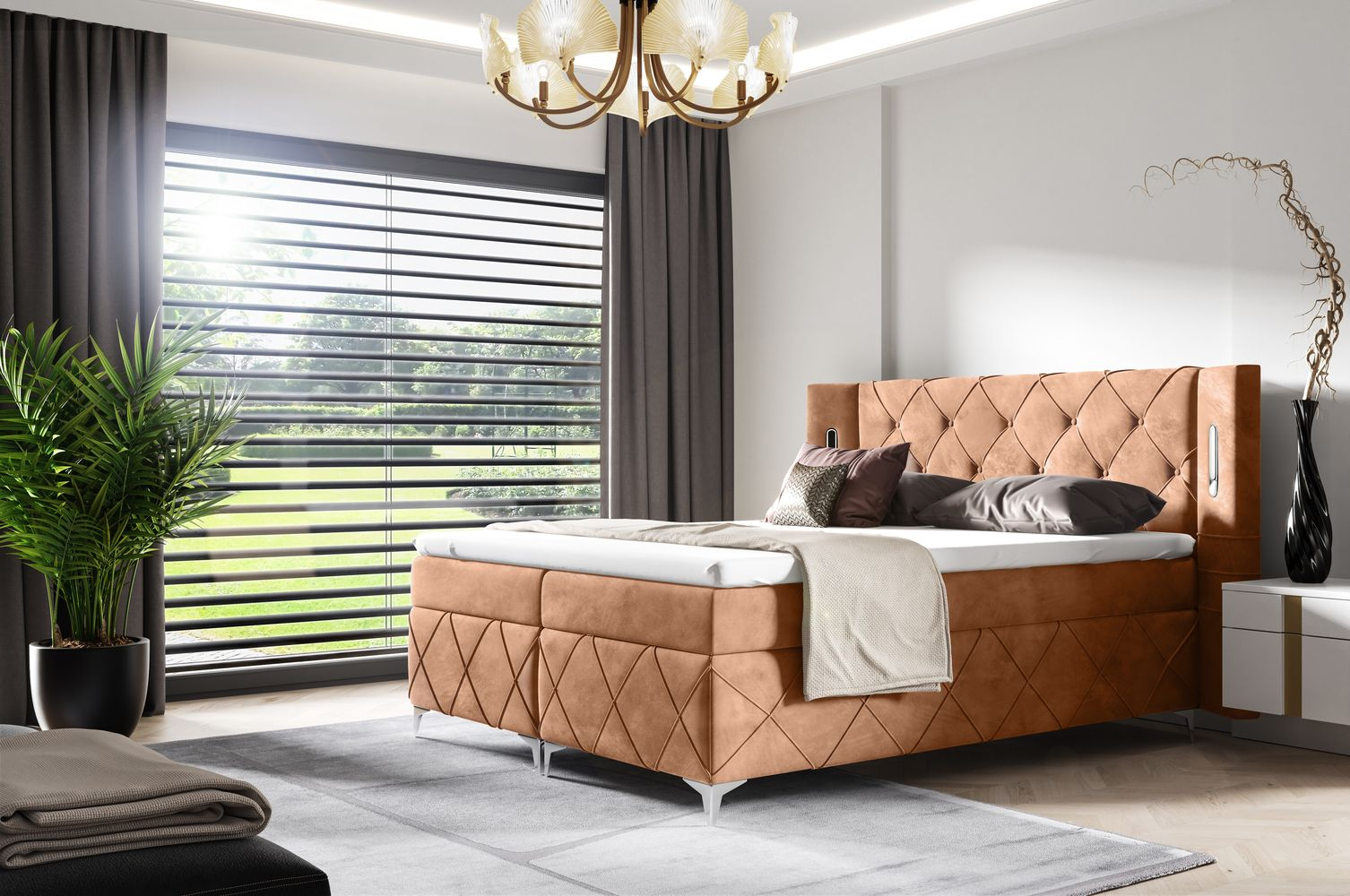 Manželská postel 180x200 NARA s úložným prostorem - oranžová + topper ZDARMA