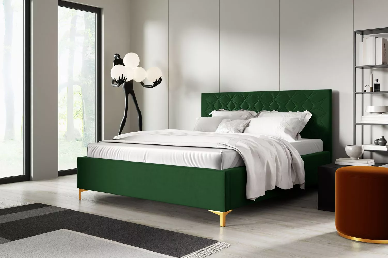 Čalouněná postel 180x200 ODETA 2 - láhvově zelená