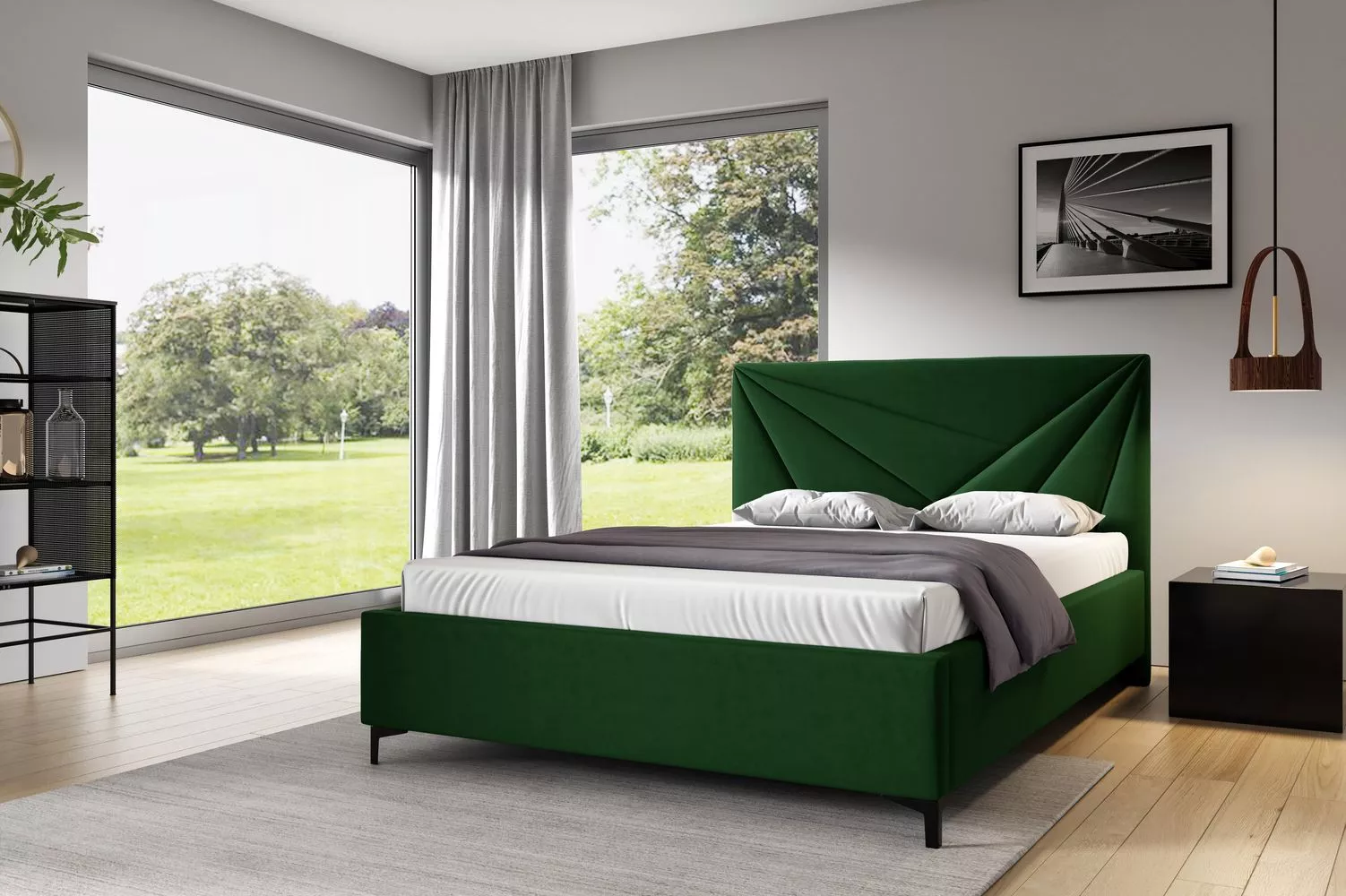 Čalouněná postel 160x200 ODETA 4 - láhvově zelená