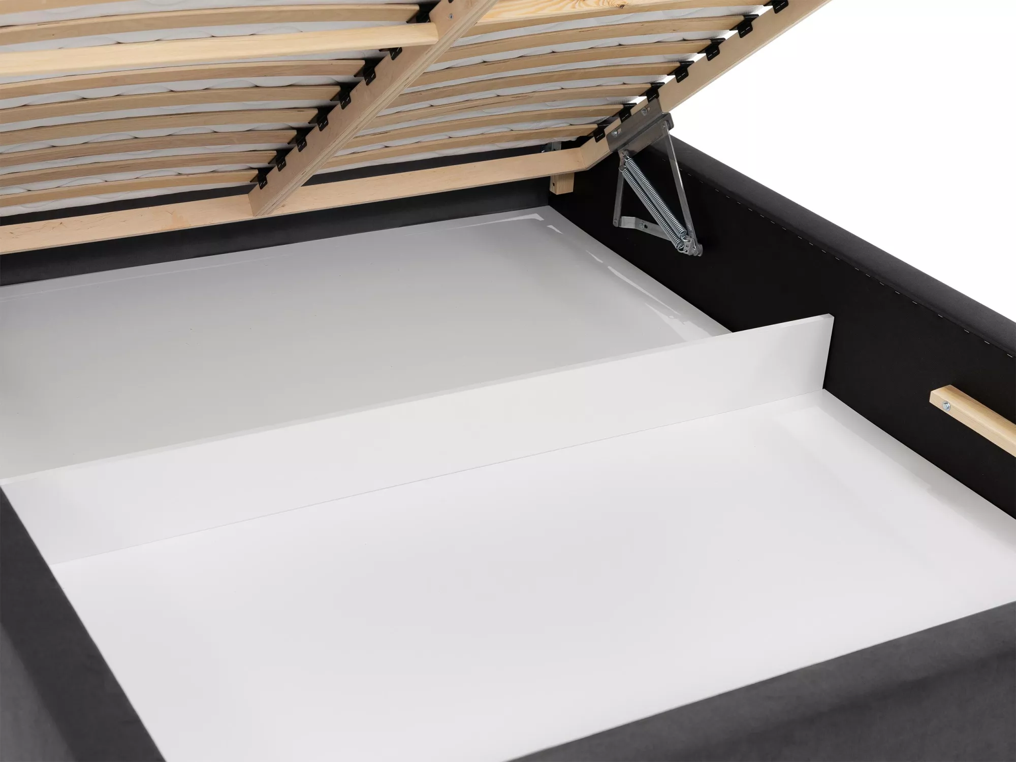 Čalouněná postel AMOL nabízí nejen nadčasový vzhled, ale také maximální komfort. Vysoké čelo poskytuje oporu a útulnost, což je ideální pro dlouhé chvíle relaxace. Integrovaný úložný prostor je praktickým řešením pro ukládání sezónního oblečení nebo ložního prádla.