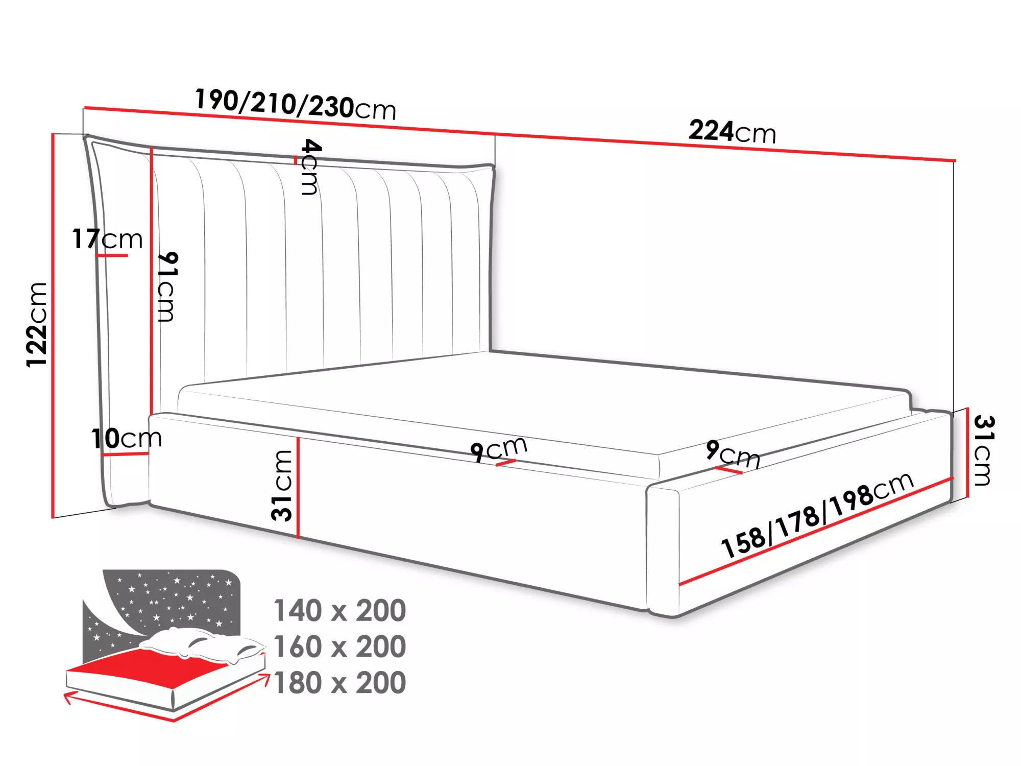 - rozměry úložného prostoru (š/v/h): 140/17/200 cm