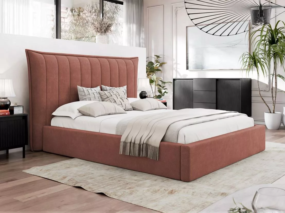 Čalouněná postel AMOL nabízí nejen nadčasový vzhled, ale také maximální komfort. Vysoké čelo poskytuje oporu a útulnost, což je ideální pro dlouhé chvíle relaxace. Integrovaný úložný prostor je praktickým řešením pro ukládání sezónního oblečení nebo ložního prádla.