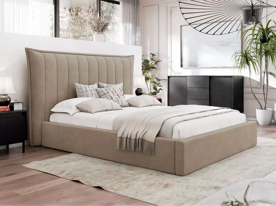 Čalouněná postel AMOL nabízí nejen nadčasový vzhled, ale také maximální komfort. Vysoké čelo poskytuje oporu a útulnost, což je ideální pro dlouhé chvíle relaxace. Integrovaný úložný prostor je praktickým řešením pro ukládání sezónního oblečení nebo ložního prádla.