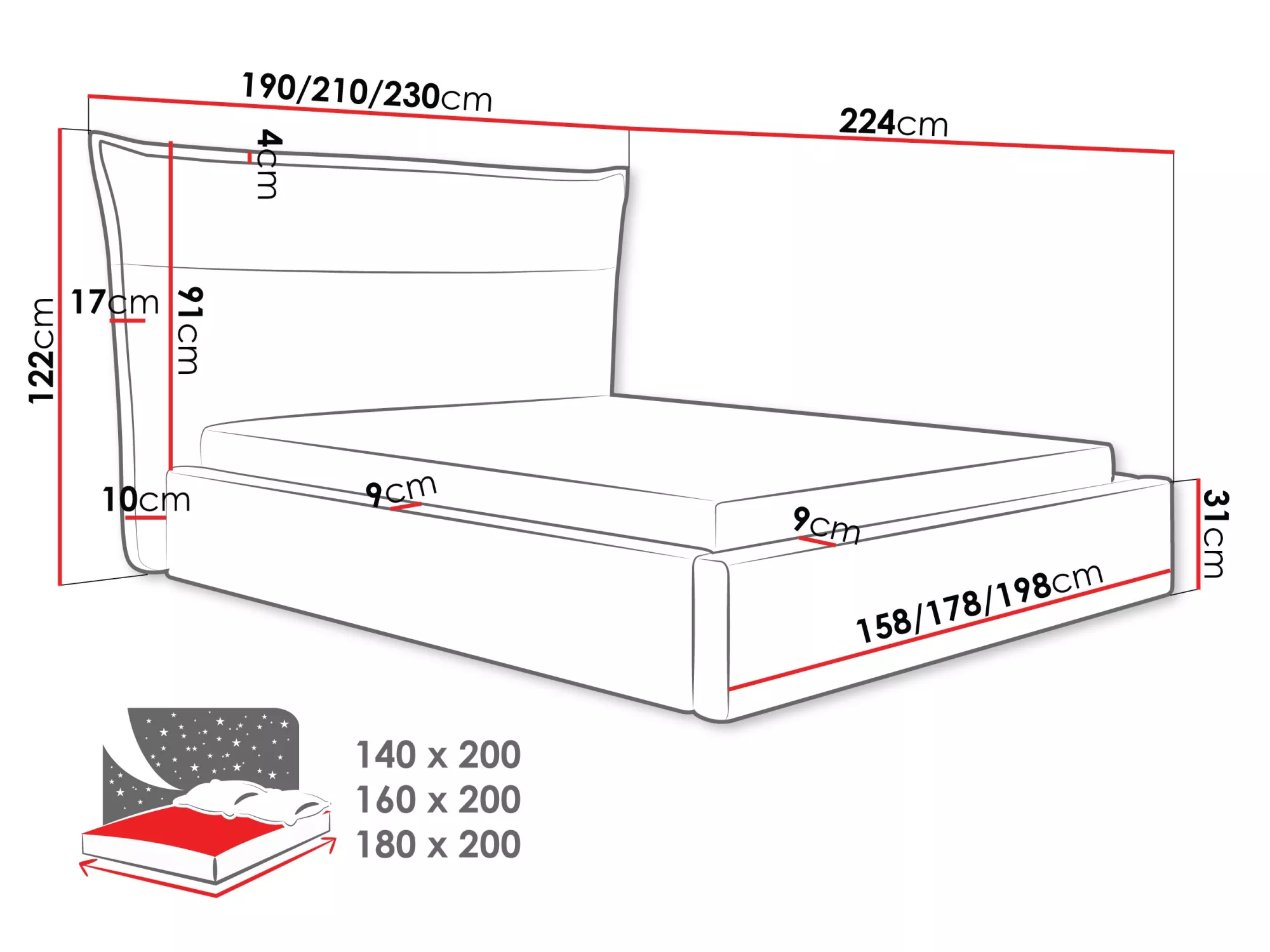 - rozměry úložného prostoru (š/v/h): 140/17/200 cm