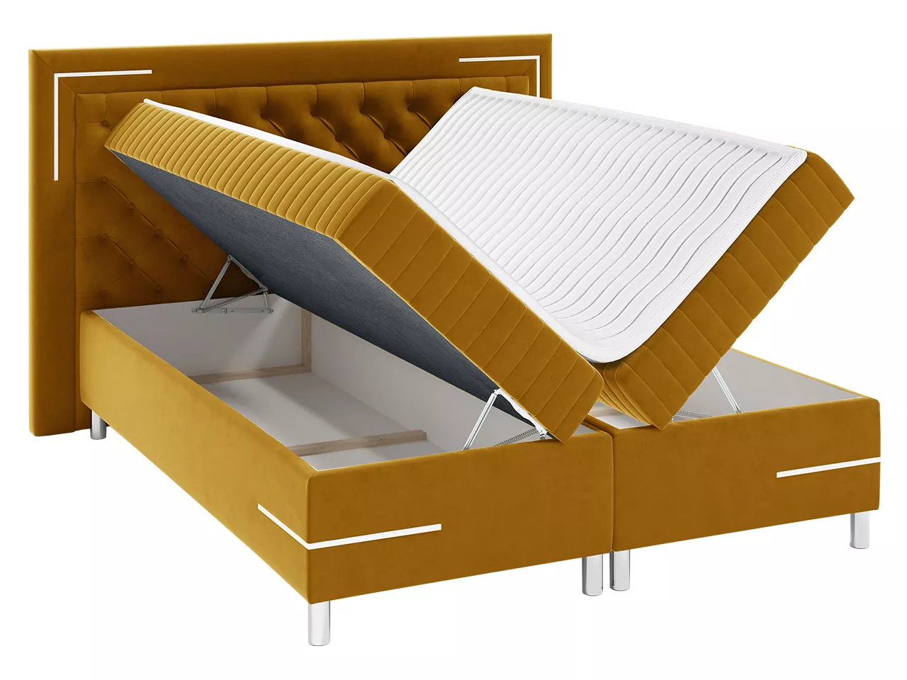 Elegantní kontinentální postel BELIA s prošívaným čelem a integrovaným LED osvětlením promění vaši ložnici v luxusní oázu klidu. Praktický dvoukomorový úložný prostor vám umožní snadno uspořádat ložní prádlo či sezónní oblečení. Pevná a odolná konstrukce spolu se středně tvrdou matrací a topperem zajistí ideální podporu pro váš spánek.