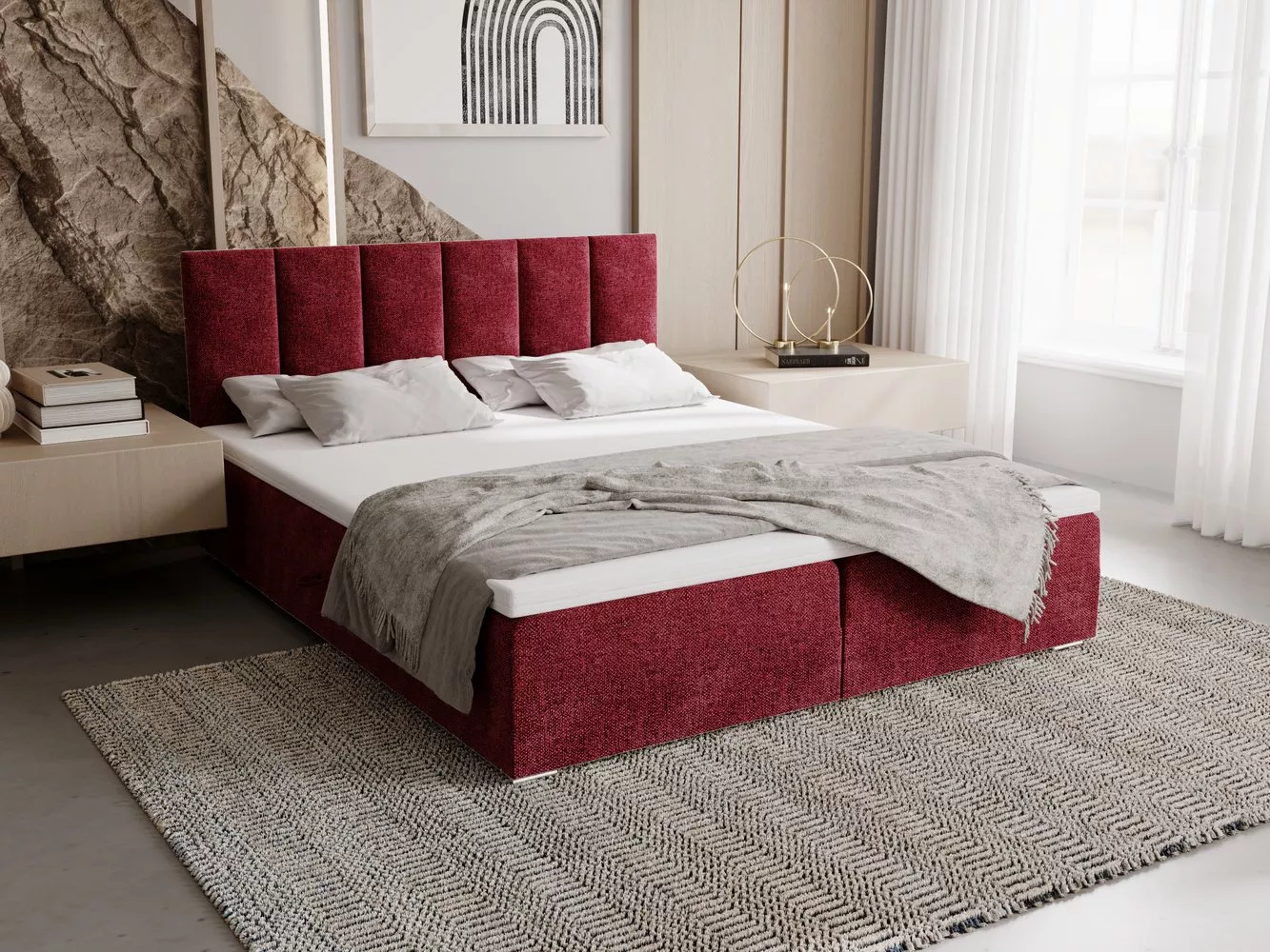 Čalouněná postel 180x200 ELSIE 4 s úložným prostorem - červená