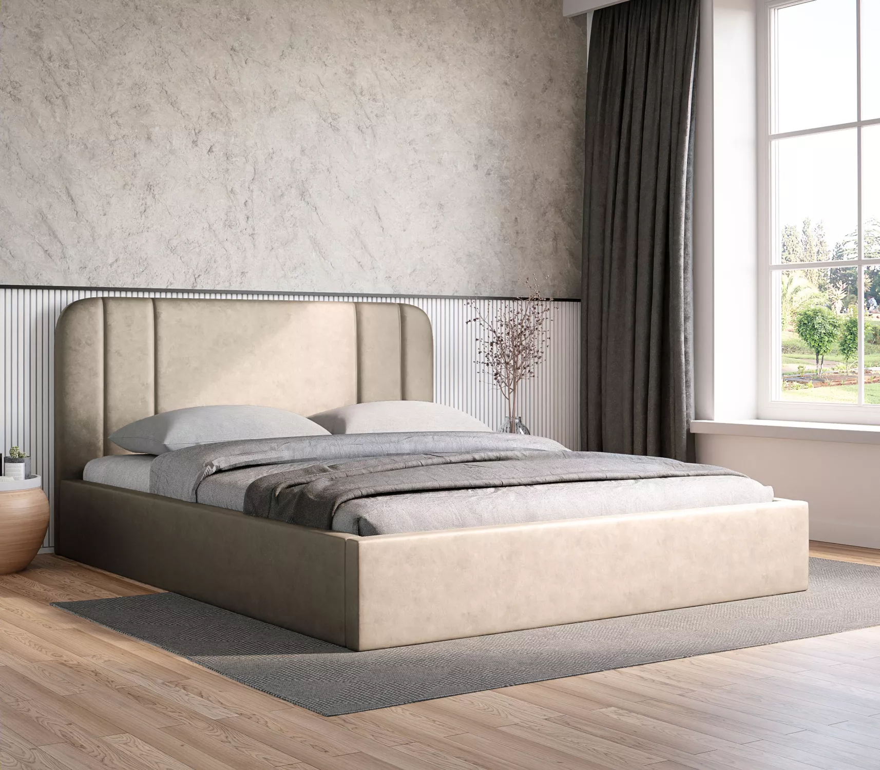 Čalouněná postel 140x200 MARGARIDA 1 kombinuje pohodlí s moderním stylem. Postel je vybavena praktickým úložným prostorem. Vysoké čelo poskytne příjemný komfort při čtení knih nebo sledování televize.