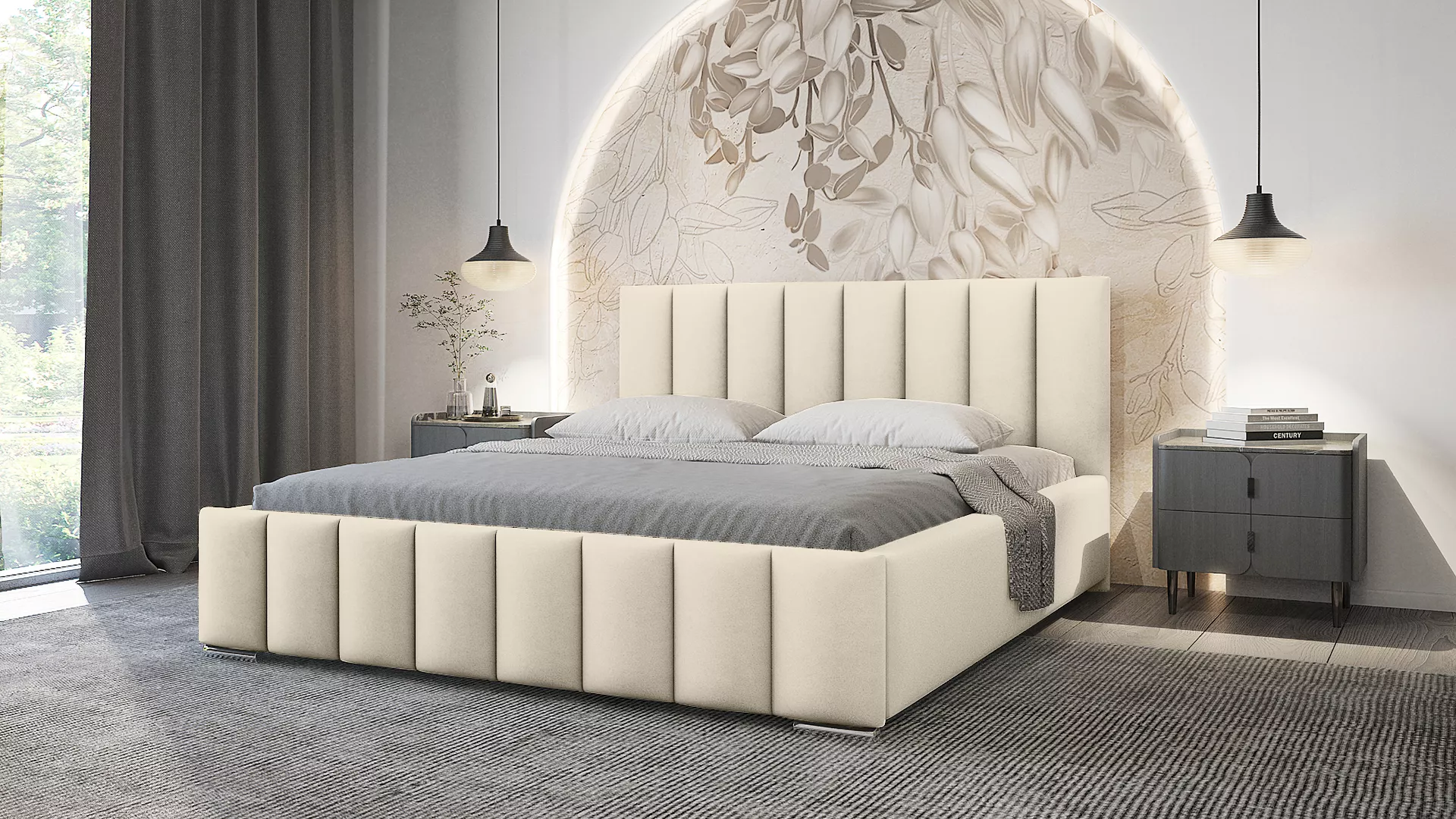 Elegantní čalouněná postel 180x200 MADALENA 1 s úložným prostorem - vanilková