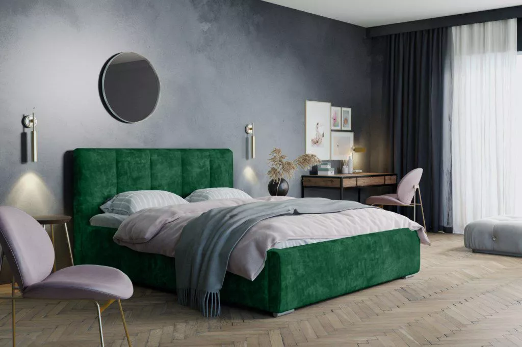 Moderní čalouněná postel 160x200 NEUSA 1 s úložným prostorem - zelená