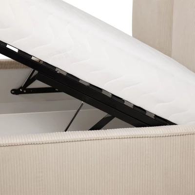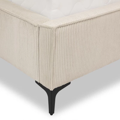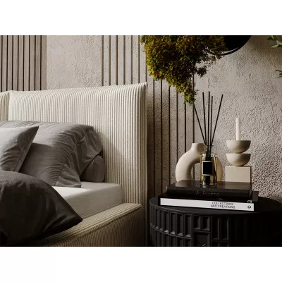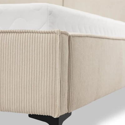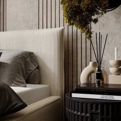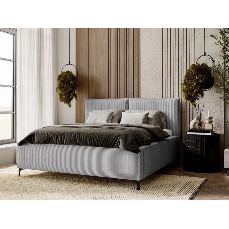 Manželská postel SKUMA se vyznačuje moderním a stylovým vzhledem, který dokonale zapadne do každého interiéru. Čalouněná opěrka hlavy s výraznou manšestrovou látkou dodává posteli jedinečný charakter. Předností této postele je vestavěný úložný prostor, který poskytuje praktické místo pro uschování lůžkovin. Pěnová výplň rámu postele nejenže zajišťuje pevnost, ale také přispívá k bezpečnosti, čímž se minimalizuje riziko úrazu.