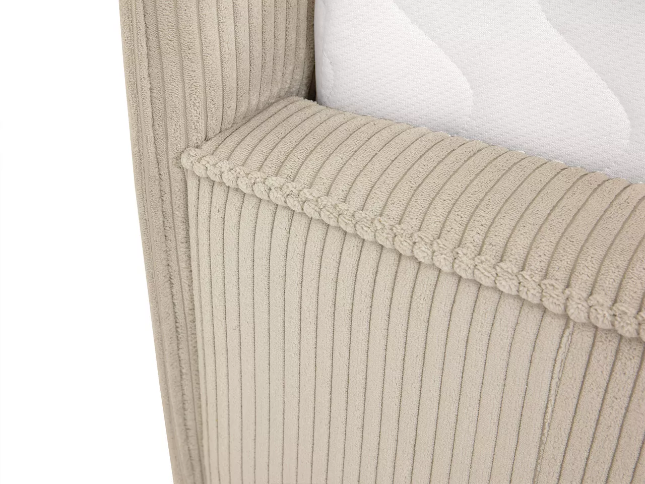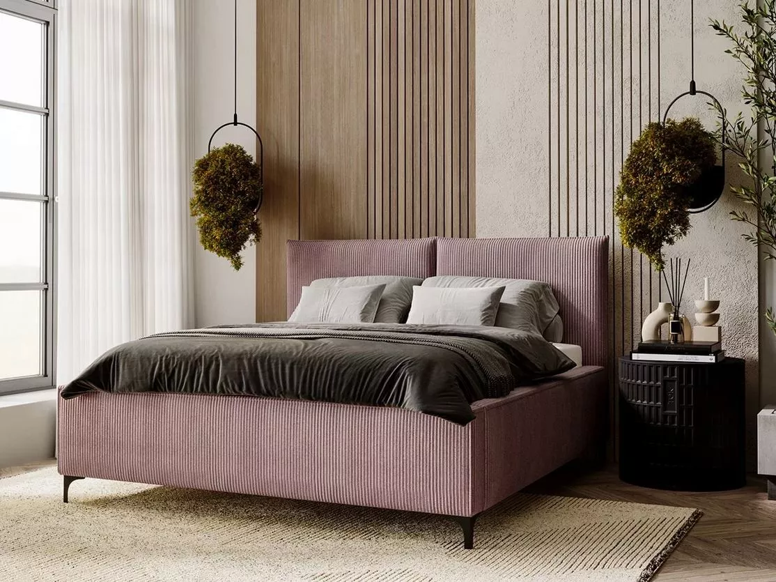 Manželská postel SKUMA se vyznačuje moderním a stylovým vzhledem, který dokonale zapadne do každého interiéru. Čalouněná opěrka hlavy s výraznou manšestrovou látkou dodává posteli jedinečný charakter. Předností této postele je vestavěný úložný prostor, který poskytuje praktické místo pro uschování lůžkovin. Pěnová výplň rámu postele nejenže zajišťuje pevnost, ale také přispívá k bezpečnosti, čímž se minimalizuje riziko úrazu.