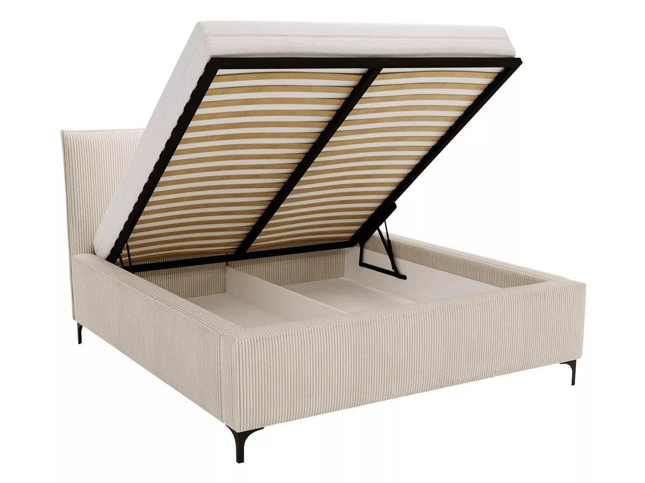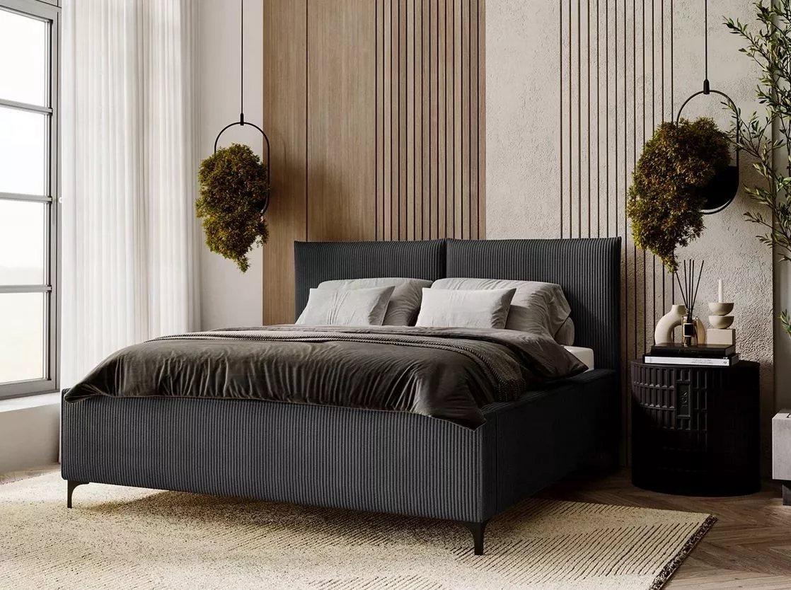 Manželská postel SKUMA se vyznačuje moderním a stylovým vzhledem, který dokonale zapadne do každého interiéru. Čalouněná opěrka hlavy s výraznou manšestrovou látkou dodává posteli jedinečný charakter. Předností této postele je vestavěný úložný prostor, který poskytuje praktické místo pro uschování lůžkovin. Pěnová výplň rámu postele nejenže zajišťuje pevnost, ale také přispívá k bezpečnosti, čímž se minimalizuje riziko úrazu.