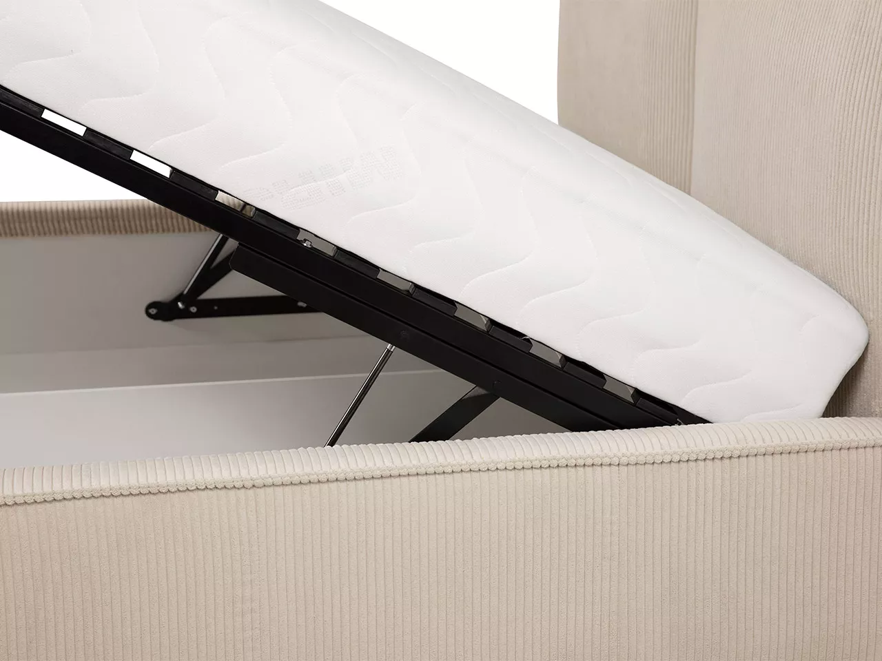 Manželská postel SKUMA se vyznačuje moderním a stylovým vzhledem, který dokonale zapadne do každého interiéru. Čalouněná opěrka hlavy s výraznou manšestrovou látkou dodává posteli jedinečný charakter. Předností této postele je vestavěný úložný prostor, který poskytuje praktické místo pro uschování lůžkovin. Pěnová výplň rámu postele nejenže zajišťuje pevnost, ale také přispívá k bezpečnosti, čímž se minimalizuje riziko úrazu.