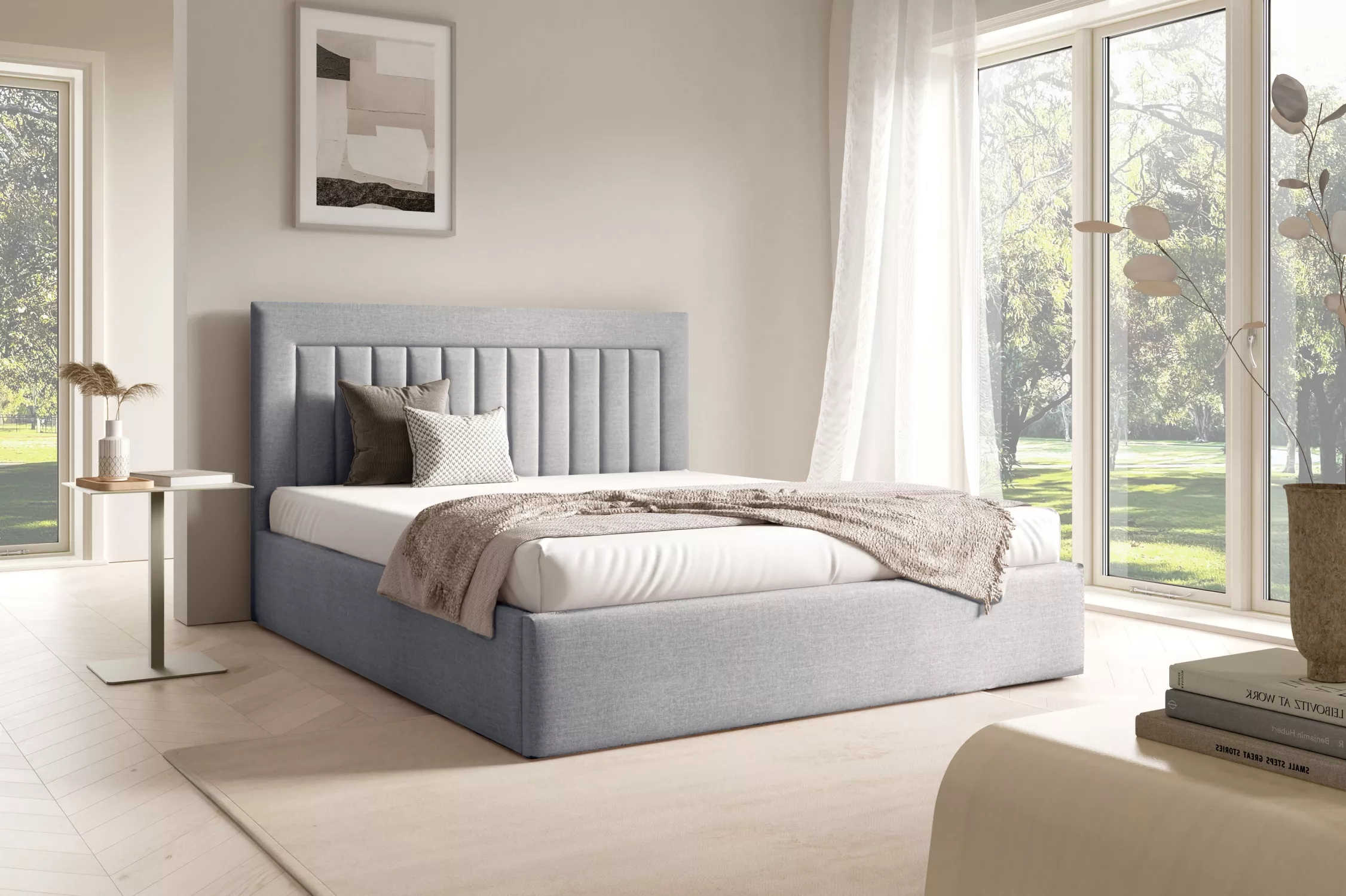 Čalouněná manželská postel 160x200 TAISA 1 skvěle zapadne do skandinávských a minimalistických ložnic. Zaujme svým designovým čelem, které zároveň zamezí poškrábání a zašpinění zdi. Postel disponuje úložným prostorem pod vyklápěcím roštem.