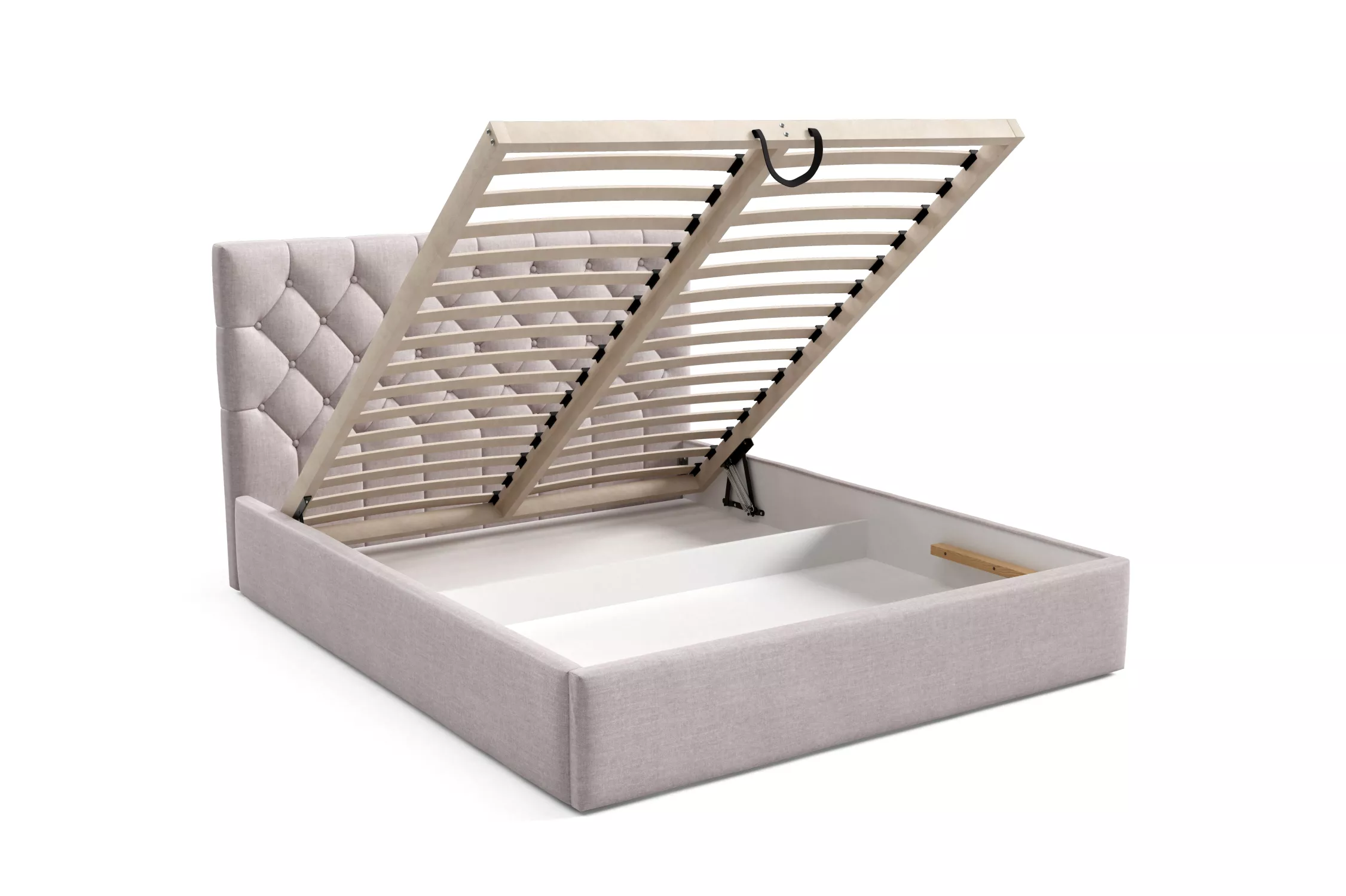 Manželská postel s roštem 160x200 TAISA 4 skvěle zapadne do skandinávských a minimalistických ložnic. Zaujme svým designovým čelem, které zároveň zamezí poškrábání a zašpinění zdi. Postel disponuje úložným prostorem pod vyklápěcím roštem.