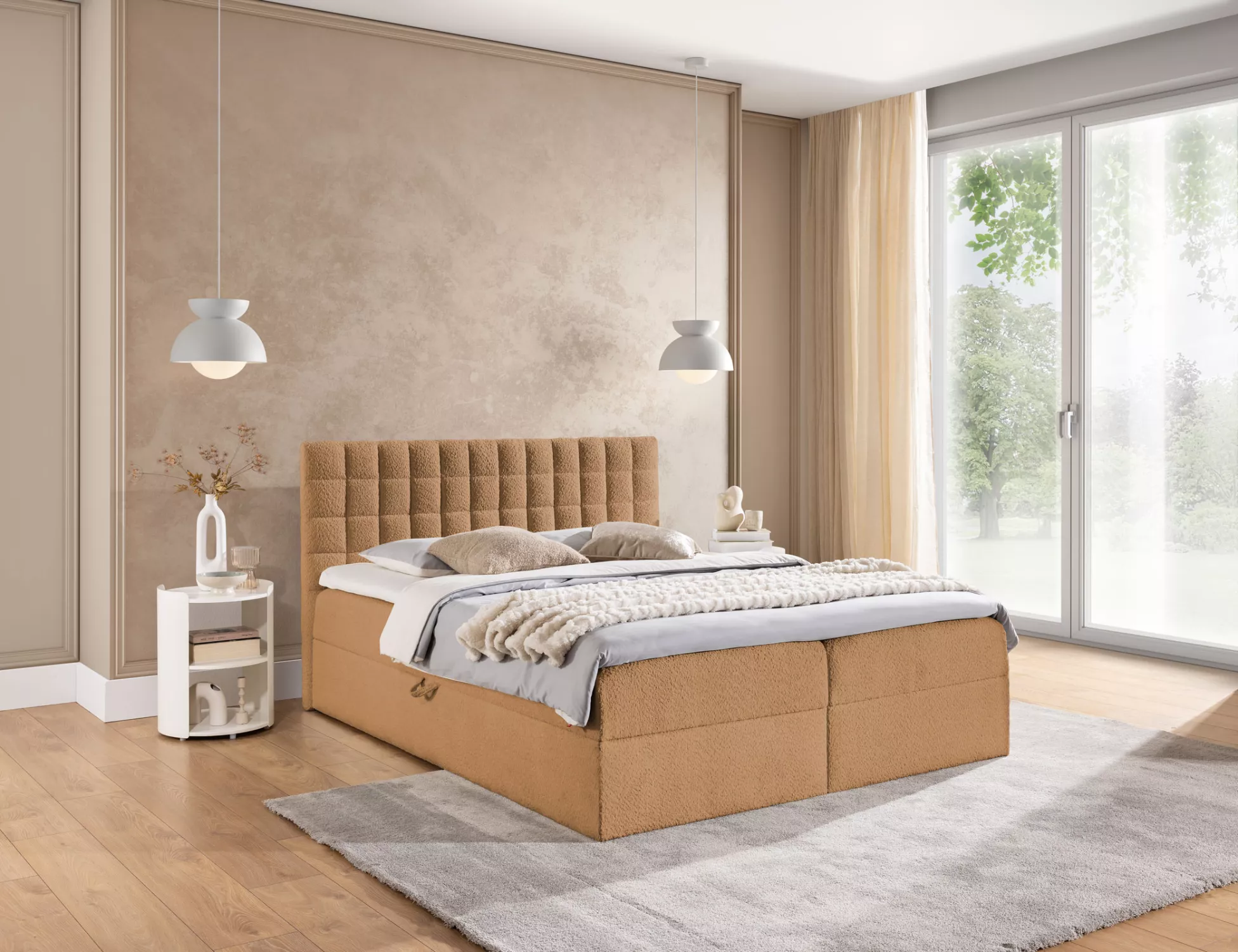 Manželská boxspringová postel 140x200 SALOMA - světle hnědá + topper