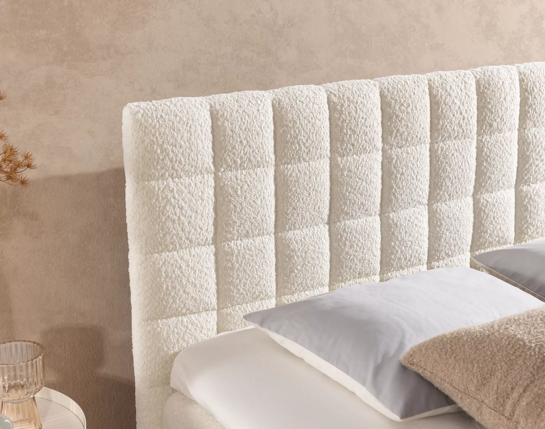 Manželská boxspringová postel 140x200 SALOMA přináší komfort při užívání a zaručuje kvalitní, zdravý a ničím nerušený spánek. Vyšší čalouněné čelo zamezí poškrábaní či zašpinění zdi. Nechybí ani praktický úložný prostor.