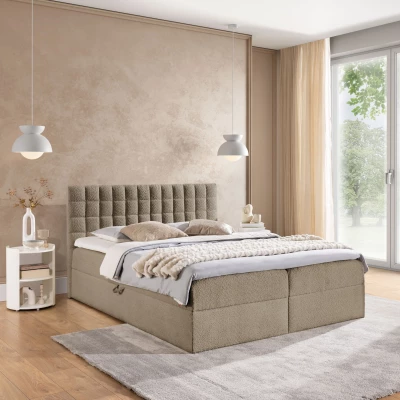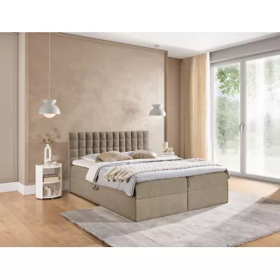 Manželská boxspringová postel 180x200 SALOMA přináší komfort při užívání a zaručuje kvalitní, zdravý a ničím nerušený spánek. Vyšší čalouněné čelo zamezí poškrábaní či zašpinění zdi. Nechybí ani praktický úložný prostor.