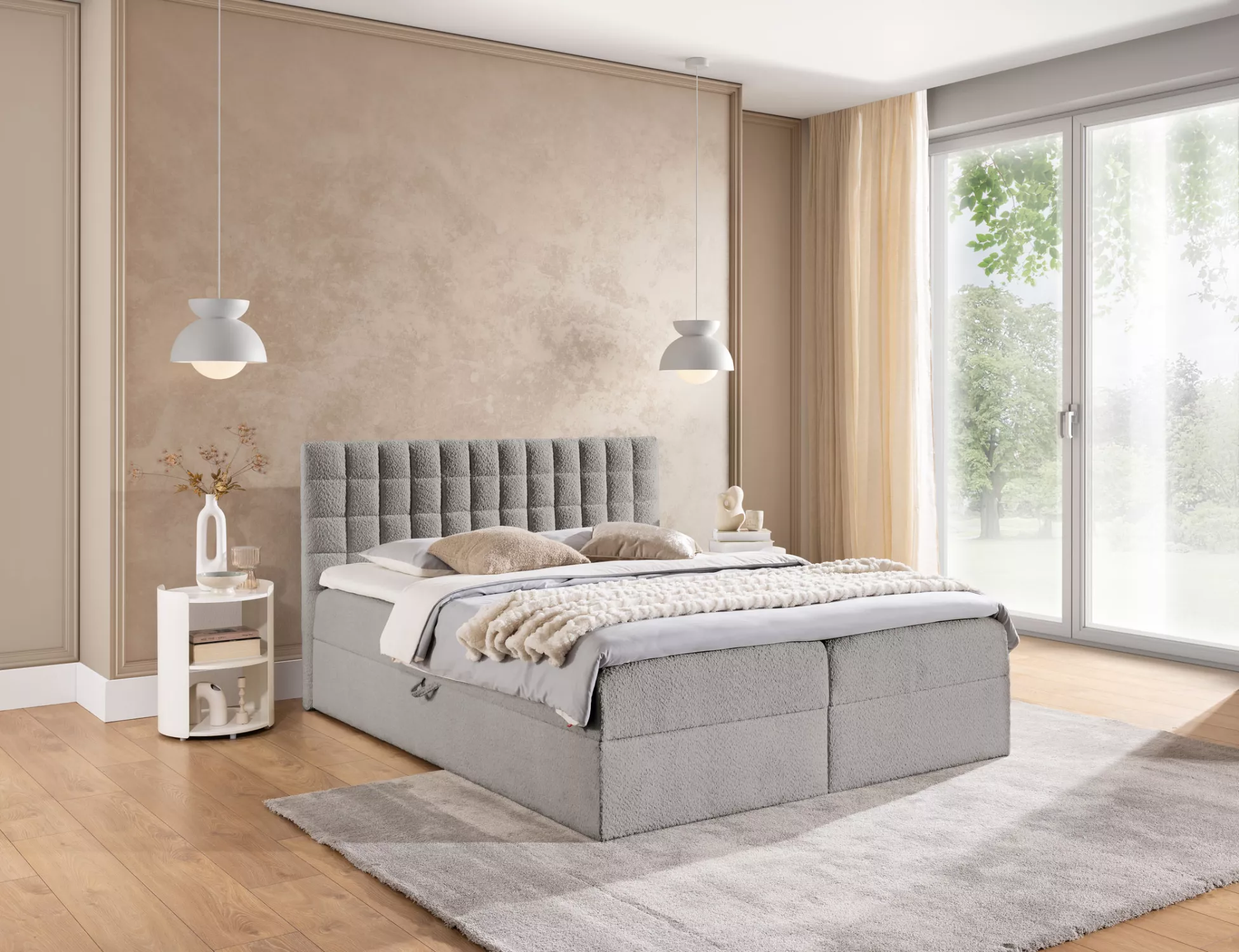 Manželská boxspringová postel 180x200 SALOMA - světle šedá + topper