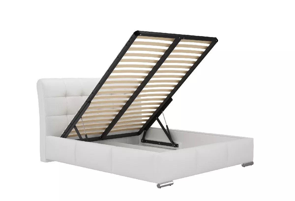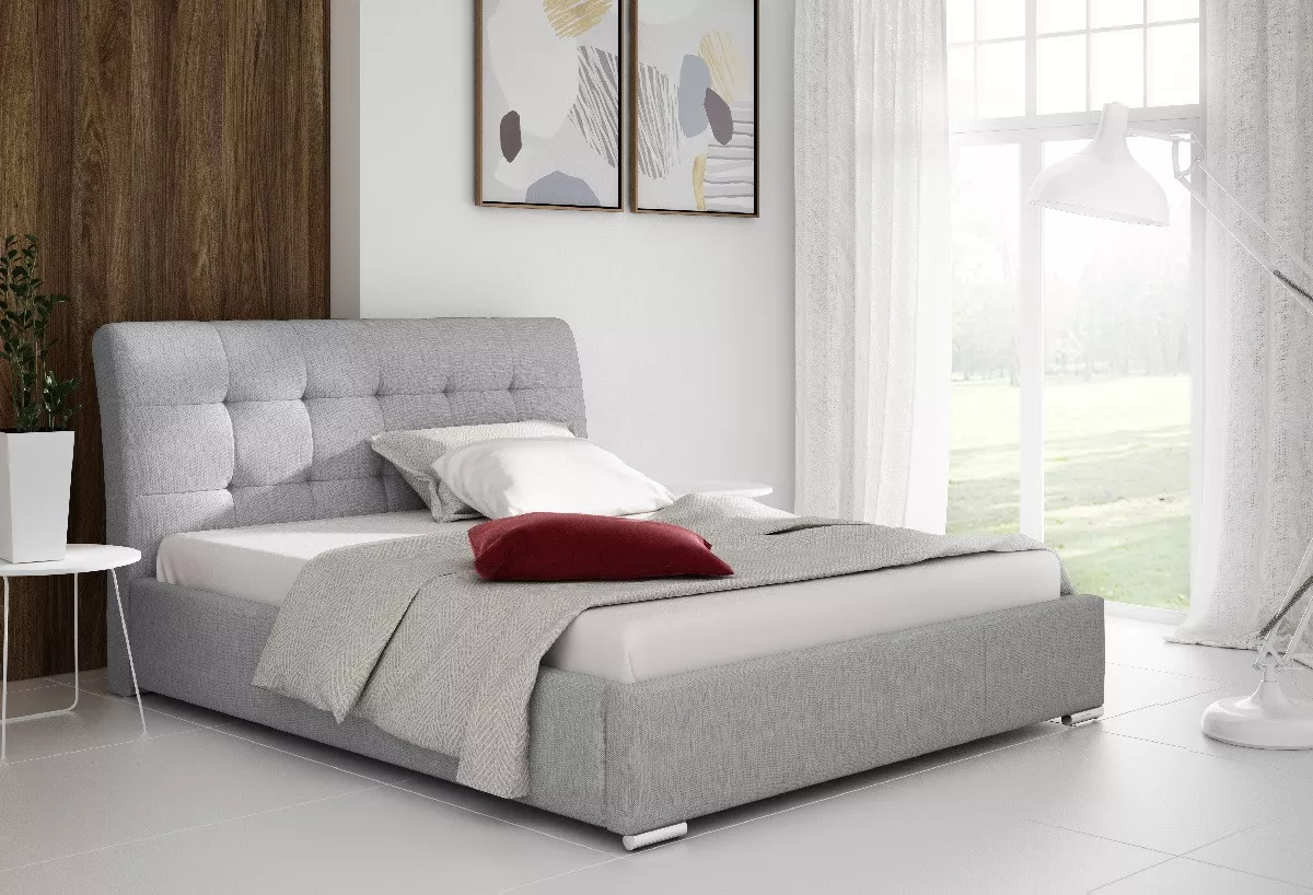 Bytelná čalouněná postel EVELYN je skvělou volbou pro mladé páry i manželé po stříbrné svatbě. Příjemné čalounění celého korpusu včetně čela dodává posteli jemnost, i když uvnitř odpočívá bytelná konstrukce, která snadno unese dva dospělé. Čelo se pyšní jemným prošíváním a dává na odiv esteticky vyvedené obdélníky. Přímo svádí ke čtení oblíbené knihy nebo sledování filmu. Korpus postele je pevně usazený na zdobných stříbrných nožičkách v nohou postele a na druhé straně pečlivě připevněný k majestátnímu čelu o výšce 103 cm. Uvnitř korpusu postele se skví úložný prostor, který je nachystaný schovat náhradní přikrývku i další povlečení a polštáře. Shora na korpusu leží vestavěný rošt na kvalitně vyvedených pantech. Díky tomu je úložný prostor dobře dostupný od noh postele.