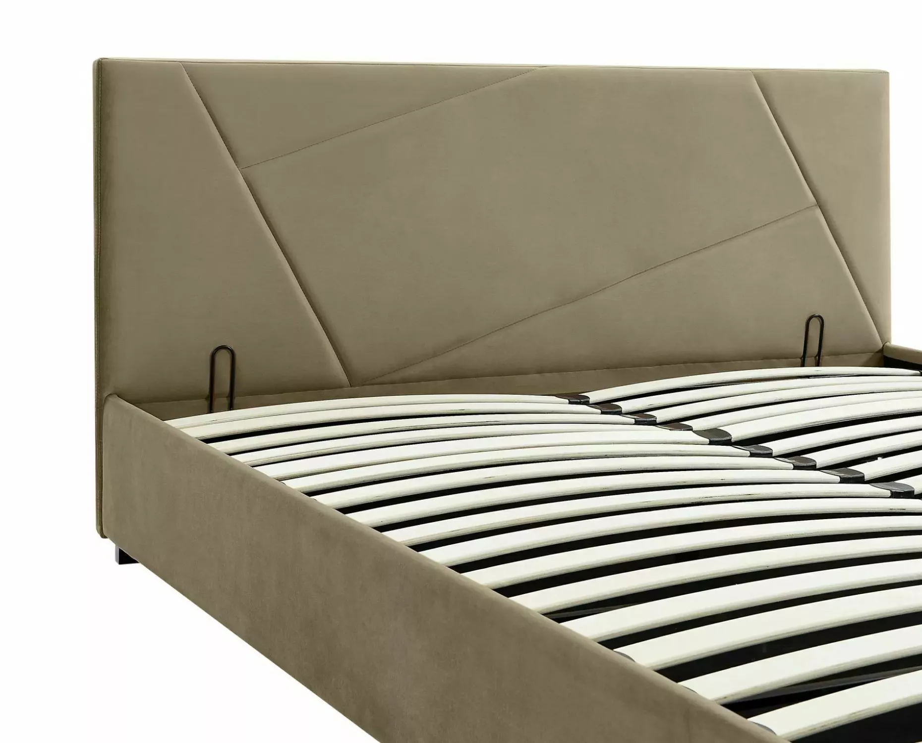 Čalouněná manželská postel 160x200 AGATHA ozvláštní každou ložnici svým vysokým designovým čelem, které zabrání zašpinění a poškrábání zdi. Postel disponuje úložným prostorem pro uschování lůžkovin nebo sezónního oblečení.
