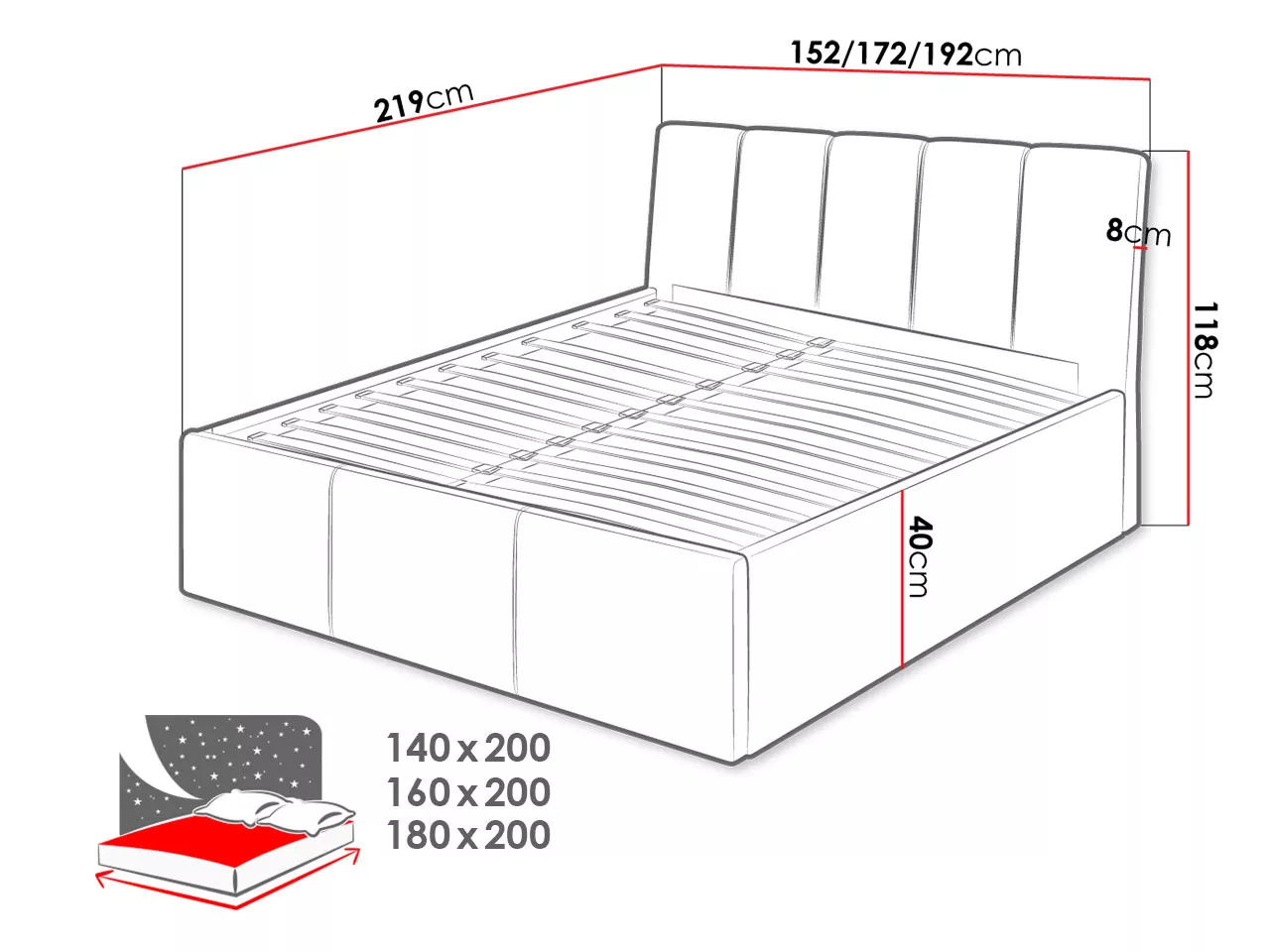- ložná plocha: 160x200 cm