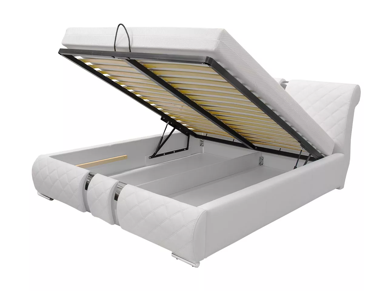 VÝPRODEJ - Čalouněná manželská postel 160x200 ZOILA - bílá ekokůže