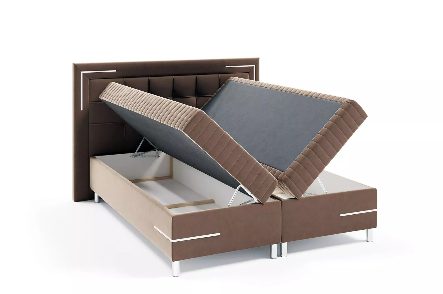 Manželská postel 160x200 RONA 2 vám zajistí pohodlný spánek a odpočinek. LED osvětlení je ovládáno pomocí ovladače. Nechybí ani praktický úložný prostor rozdělen na 2 části.