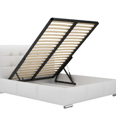 Bytelná čalouněná postel EVELYN je skvělou volbou pro mladé páry i manželé po stříbrné svatbě. Příjemné čalounění celého korpusu včetně čela dodává posteli jemnost, i když uvnitř odpočívá bytelná konstrukce, která snadno unese dva dospělé. Čelo se pyšní jemným prošíváním a dává na odiv esteticky vyvedené obdélníky. Přímo svádí ke čtení oblíbené knihy nebo sledování filmu. Korpus postele je pevně usazený na zdobných stříbrných nožičkách v nohou postele a na druhé straně pečlivě připevněný k majestátnímu čelu o výšce 103 cm. Uvnitř korpusu postele se skví úložný prostor, který je nachystaný schovat náhradní přikrývku i další povlečení a polštáře. Shora na korpusu leží vestavěný rošt na kvalitně vyvedených pantech. Díky tomu je úložný prostor dobře dostupný od noh postele.