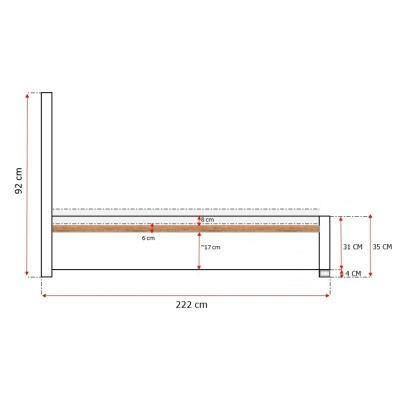 - výška boků bez nožiček: 31 cm