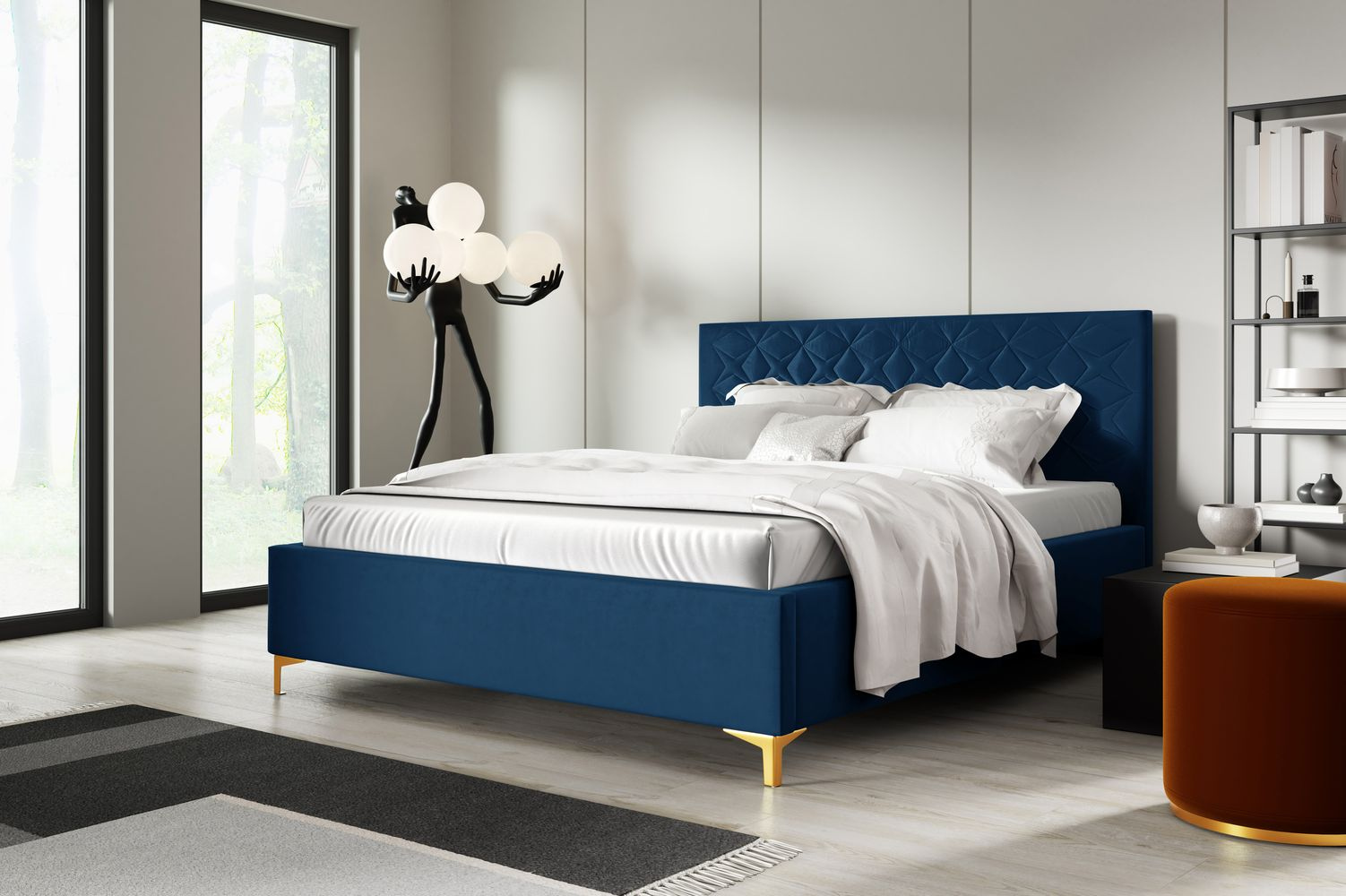 Elegantní čalouněná postel Champ 160x200, modrá