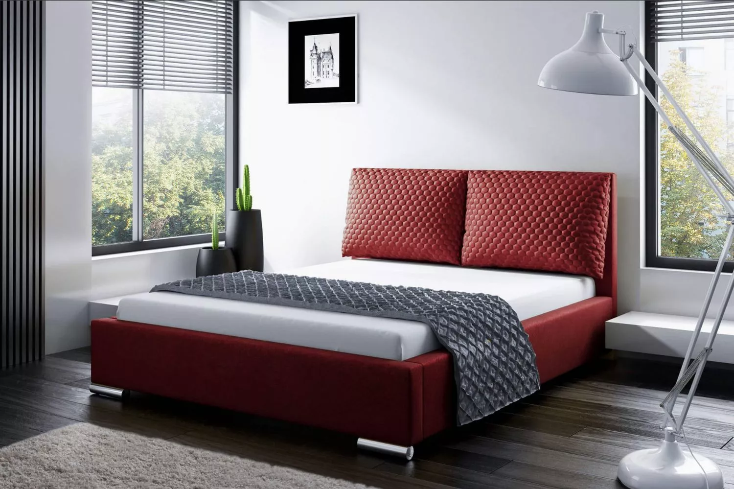 Praktická postel s polštáři 160x200 DUBAI - červená