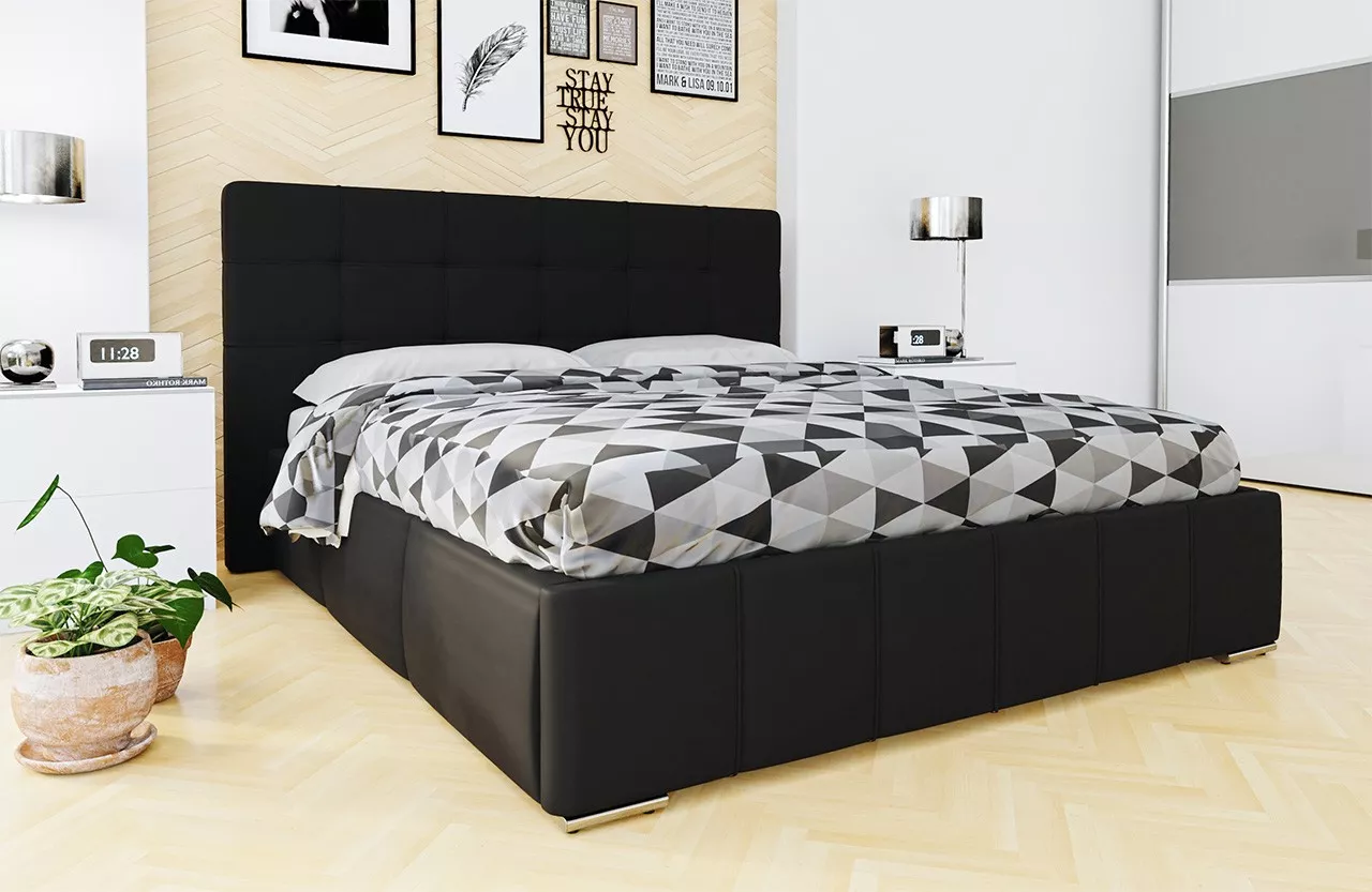 Manželská postel s roštem 140x200 MELDORF - černá ekokůže