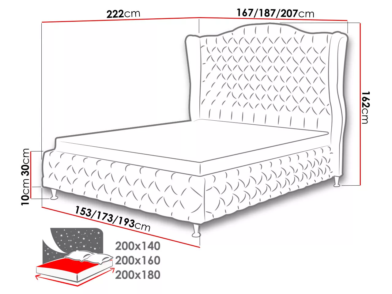 - ložná plocha: 140x200 cm