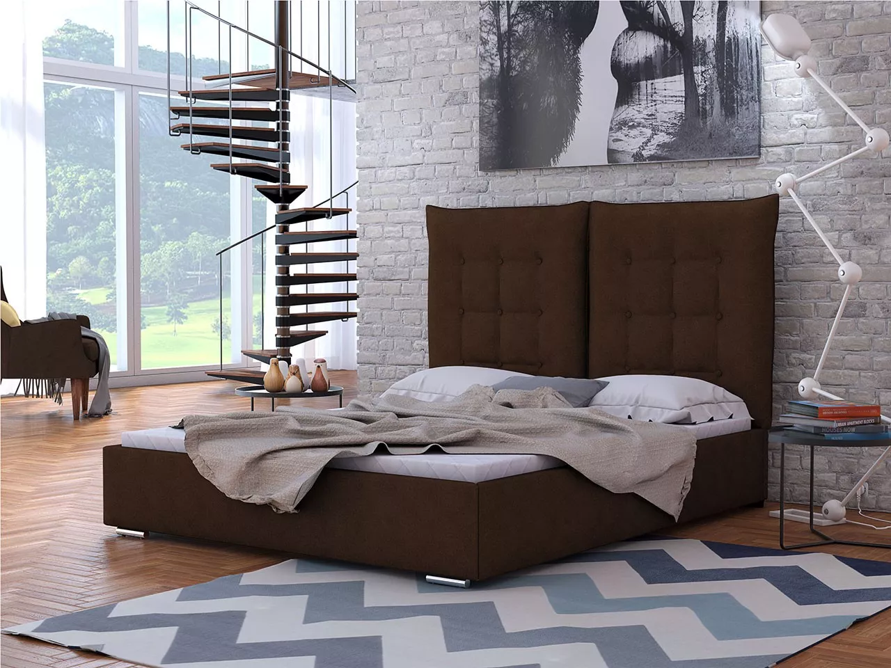 Čalouněná postel se sklápěcím čelem s roštem 160x200 DASSOW - hnědá