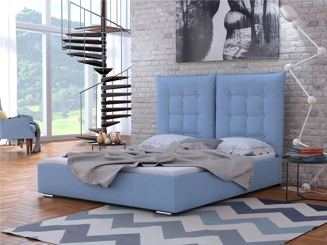 Čalouněná postel se sklápěcím čelem s roštem 160x200 DASSOW - modrá
