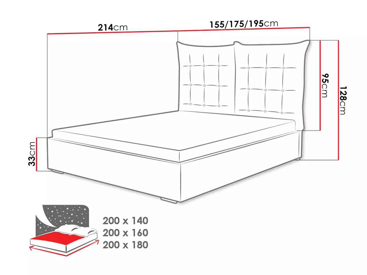 - konstrukce postele: dřevěný rám + dvojitá deska o síle 13 mm + dřevěná deska o síle 12 mm