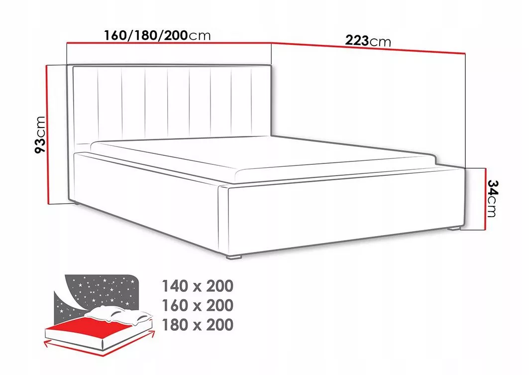 - ložná plocha: 160x200 cm
